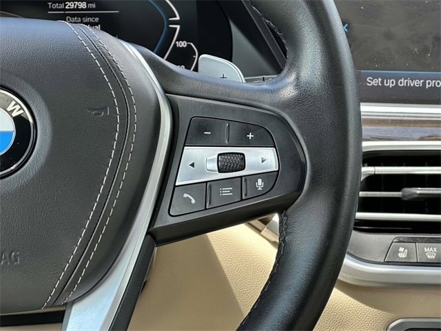 Connected Package Pro, 10 Speakers, 4-Wheel Disc Brakes, 4-Zone Automatic Climate Control, ABS brakes, Active Park Distance Control, Air Conditioning, Alloy wheels, Aluminum Running Boards, AM/FM radio: SiriusXM, AM/FM Stereo, Android Auto Compatibility, Apple CarPlay Compatibility, Auto High-beam Headlights, Auto tilt-away steering wheel, Auto-dimming door mirrors, Auto-dimming Rear-View mirror, Auto-leveling suspension, Automatic temperature control, Axle Ratio: TBD, BMW Assist eCall, BMW TeleServices, Brake assist, Bumpers: body-color, Compass, Delay-off headlights, Drive Recorder, Driver door bin, Driver vanity mirror, Dual front impact airbags, Dual front side impact airbags, Electronic Stability Control, Emergency communication system: BMW Assist eCall, Enhanced USB & Bluetooth, Exterior Parking Camera Rear, Four wheel independent suspension, Front anti-roll bar, Front Bucket Seats, Front Center Armrest, Front dual zone A/C, Front fog lights, Front Massaging Seats (DISC), Front reading lights, Front Ventilated Seats, Fully automatic headlights, Garage door transmitter, Genuine wood console insert, Genuine wood dashboard insert, Genuine wood door panel insert, Gesture Control, harman/kardon Surround Sound System (DISC), Head restraints memory, Head-Up Display, Heated door mirrors, Heated Front Seats, Heated front seats, Hi-Fi Sound System, Illuminated entry, Knee airbag, Leather Shift Knob, Leather steering wheel, Low tire pressure warning, Lumbar Support, Memory seat, Multi-Contour Seats, Navigation System, Occupant sensing airbag, Outside temperature display, Overhead airbag, Panic alarm, Parking Assistant Plus, Passenger door bin, Passenger vanity mirror, Power adjustable front head restraints, Power door mirrors, Power driver seat, Power Front Seats, Power moonroof, Power passenger seat, Power steering, Power windows, Radio data system, Rain sensing wipers, Rear anti-roll bar, Rear reading lights, Rear seat center armrest, Rear window defroster, Rear window wiper, Rear-View Camera, Remote keyless entry, Roof rack: rails only, Security system, SensaTec Upholstery, SiriusXM Satellite Radio w/1 Year All Access, Speed control, Speed-sensing steering, Speed-Sensitive Wipers, Split folding rear seat, Spoiler, Sport Seats, Sport steering wheel, Steering wheel memory, Steering wheel mounted audio controls, Surround View w/3D View, Tachometer, Telescoping steering wheel, Tilt steering wheel, Traction control, Trailer Hitch, Trip computer, Turn signal indicator mirrors, Variably intermittent wipers, Wheels: 19" x 9" V-Spoke (Style 734), WiFi Hotspot, and Wireless Charging.