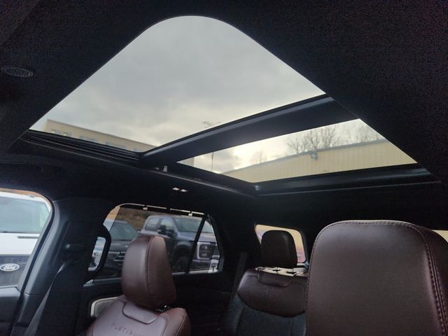 Class IV Trailer Tow Package, Equipment Group 601A (3.31 Non-Limited-Slip Rear Axle Ratio), Technology Package (10.1" LCD Capacitive Portrait Touchscreen and 2 Additional Speakers), Exterior Parking Camera Rear, Front dual zone A/C, Fully automatic headlights, Heated front seats, Heated rear seats, Leather Htd/Ventilated Sport Captain's Chairs, Navigation System, Power Liftgate, SYNC 3/Apple CarPlay/Android Auto, Ventilated front seats, Wheels: 21" Bright Machined-Face Aluminum, 12 Speakers, 3rd row seats: bench, 4-Wheel Disc Brakes, 4G LTE Wi-Fi Hotspot Credit, ABS brakes, Air Conditioning, Alloy wheels, AM/FM radio: SiriusXM, Auto High-beam Headlights, Auto-dimming door mirrors, Auto-dimming Rear-View mirror, Automatic temperature control, Brake assist, Bumpers: body-color, Compass, Delay-off headlights, Driver door bin, Driver vanity mirror, Dual front impact airbags, Dual front side impact airbags, Electronic Stability Control, Emergency communication system: SYNC 3 911 Assist, FordPass Connect, Four wheel independent suspension, Front & Second Row Floor Liners (16B), Front anti-roll bar, Front Bucket Seats, Front Center Armrest, Front fog lights, Front reading lights, Garage door transmitter, Genuine wood dashboard insert, Heated door mirrors, Heated steering wheel, Illuminated entry, Knee airbag, Leather steering wheel, Low tire pressure warning, Memory seat, Occupant sensing airbag, Outside temperature display, Overhead airbag, Overhead console, Panic alarm, Passenger door bin, Passenger vanity mirror, Power door mirrors, Power driver seat, Power passenger seat, Power steering, Power windows, Radio data system, Radio: B&O Sound System by Bang & Olufsen, Rain sensing wipers, Rear air conditioning, Rear anti-roll bar, Rear reading lights, Rear window defroster, Rear window wiper, Remote keyless entry, Roof rack: rails only, Security system, Speed control, Speed-sensing steering, Speed-Sensitive Wipers, Split folding rear seat, Spoiler, Steering wheel memory, Steering wheel mounted audio controls, SYNC 3 Communications & Entertainment System, Tachometer, Telescoping steering wheel, Tilt steering wheel, Traction control, Trip computer, Turn signal indicator mirrors, Twin Panel Moonroof, Variably intermittent wipers, and Voice-Activated Touchscreen Navigation System.