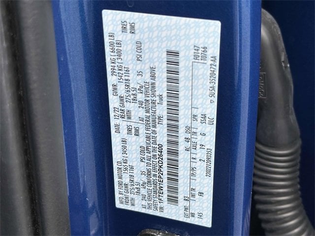 10-Way Power Driver & Passenger Seats, 2-Bar Style Grille w/Chrome 2 Minor Bars, 8" Productivity Screen in Instrument Cluster, Accent-Color Step Bars, Auto-Dimming Rear-View Mirror, Black 2-Bar Style Grille w/Black Surround/Accents, Body-Color Door & Tailgate Handles, Body-Color Front & Rear Bumpers, Box Side Decals, Bright Polished Step Bars, Chrome Door & Tailgate Handles w/Body-Color Bezel, Chrome Single-Tip Exhaust, Class IV Trailer Hitch Receiver, Connected Built-In Navigation, Dual Zone Electronic Automatic Temperature Control, Equipment Group 302A High, Evasive Steering Assist, Ford Co-Pilot360 Assist 2.0, GVWR: 6,470 lbs Payload Package, Heated Front Seats, Integrated Trailer Brake