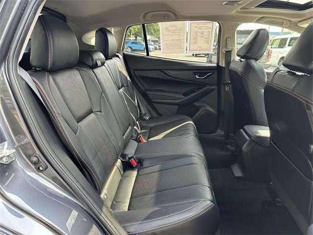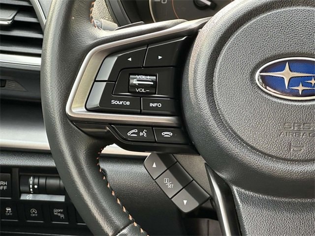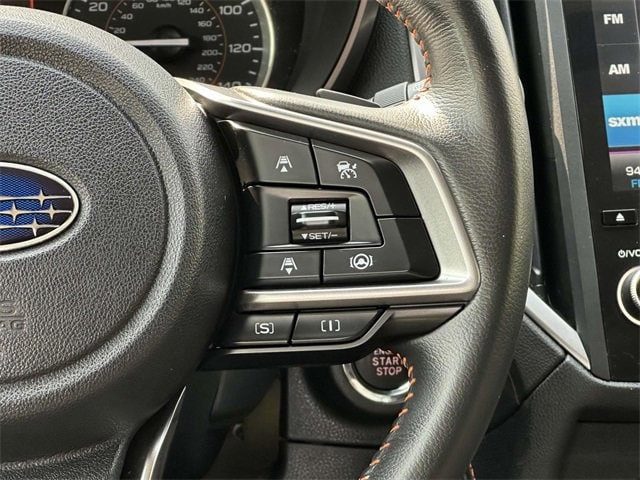 4-Wheel Disc Brakes, ABS brakes, Anti-whiplash front head restraints, Auto-Dimming Mirror w/Compass & HomeLink, Dual front impact airbags, Dual front side impact airbags, Emergency communication system: STARLINK Safety and Security (Subscription Required), Front anti-roll bar, Front Bucket Seats, Front Center Armrest, Heated door mirrors, Heated Front Bucket Seats, Heated front seats, Knee airbag, Leather-Trimmed Upholstery, Low tire pressure warning, Moonroof Package, Occupant sensing airbag, Overhead airbag, Power door mirrors, Power driver seat, Power Moonroof, Power steering, Power windows, Radio: Subaru STARLINK 8.0" Multimedia Plus System, Rear anti-roll bar, Remote keyless entry, Split folding rear seat, Steering wheel mounted audio controls.