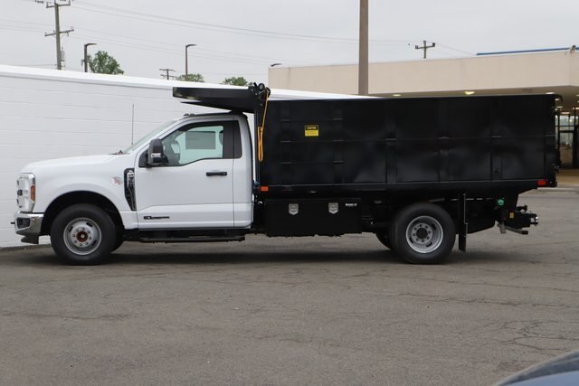 GVWR: 14,000 lb Payload Package, ABS brakes, Compass, Heated door mirrors, Illuminated entry, Low tire pressure warning, Remote keyless entry, Traction control, 17" Argent Painted Steel Wheels, 3.73 Axle Ratio, 4 Speakers, 4-Wheel Disc Brakes, Air Conditioning, AM/FM radio, AM/FM Stereo w/MP3 Player, Brake assist, Delay-off headlights, Dual front impact airbags, Dual front side impact airbags, Dual rear wheels, Emergency communication system: SYNC 4 911 Assist, Front anti-roll bar, Front Center Armrest w/Storage, Front reading lights, Front wheel independent suspension, Fully automatic headlights, Outside temperature display, Overhead airbag, Overhead console, Panic alarm, Passenger cancellable airbag, Passenger vanity mirror, Power door mirrors, Power steering, Power windows, Rear anti-roll bar, Speed control, Steering wheel mounted audio controls, SYNC 4 Communications & Entertainment System, Tachometer, Telescoping steering wheel, Tilt steering wheel, Trip computer, Turn signal indicator mirrors, and Variably intermittent wipers. 2024 ABS brakes, Compass, Heated door mirrors, Illuminated entry, Low tire pressure warning, Remote keyless entry, Traction control. Ford F-350SD 169 WB Power Stroke 6.7L V8 DI 32V OHV Turbodiesel Oxford White