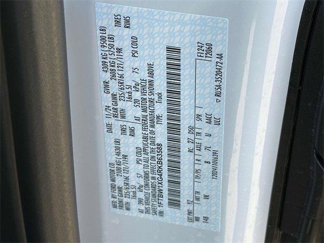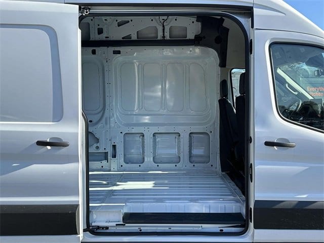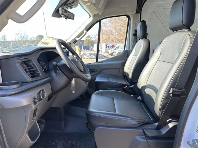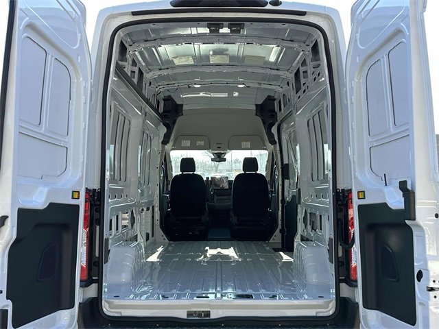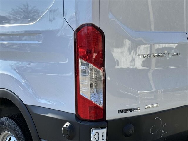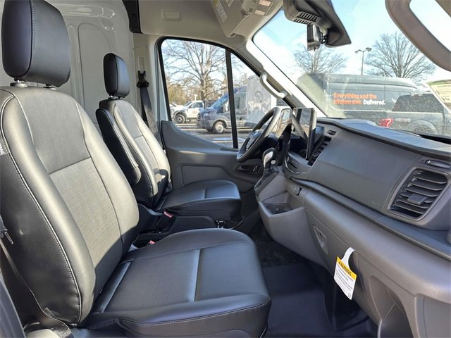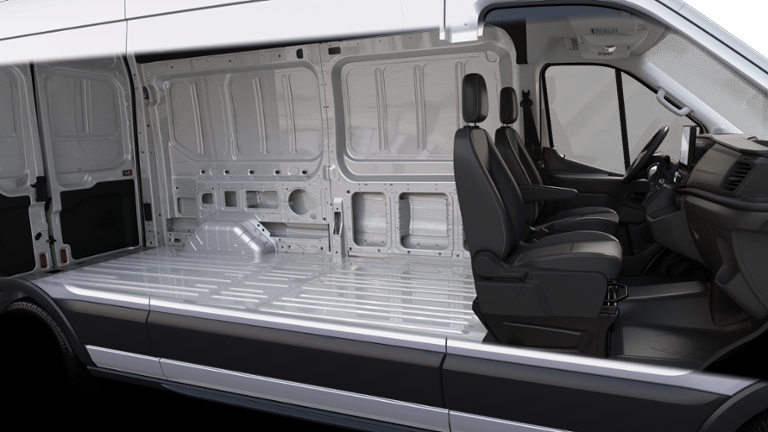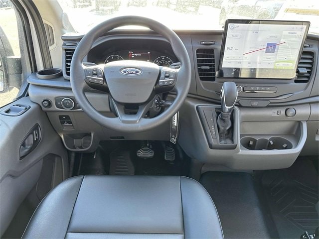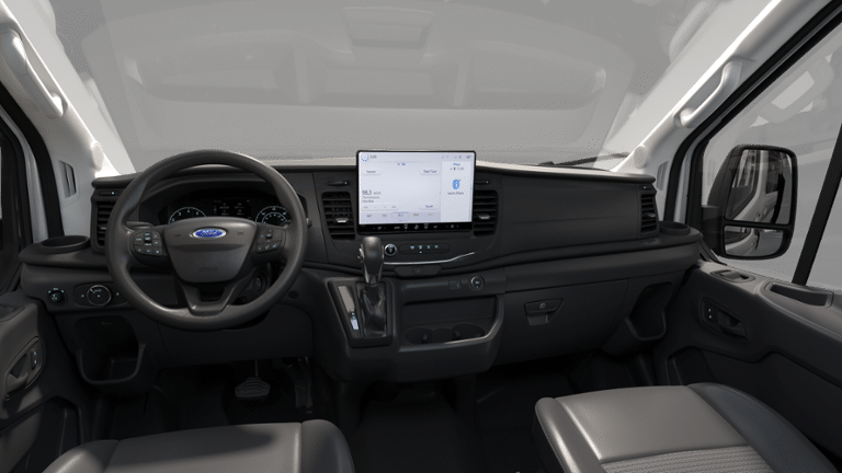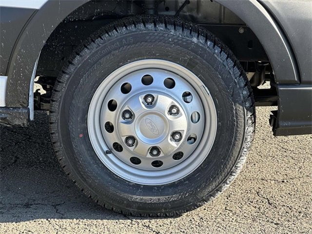 Heavy-Duty Trailer Tow Package (Frame Mounted Hitch Receiver and Tow/Haul Mode w/Trailering Wiring Provisions), Order Code 101A, 110V/400W Power Outlet, 360-Degree Camera w/Split View, 4 Speakers, 4-Wheel Disc Brakes, ABS brakes, Air Conditioning, AM/FM radio, AM/FM Stereo, Auto High-beam Headlights, Brake assist, Dark Palazzo Gray Vinyl Bucket Seats, Delay-off headlights, Digital Rearview Mirror, Driver door bin, Driver's Seat Mounted Armrest, Dual AGM Batteries (70 Amp-hr Each), Dual front impact airbags, Dual front side impact airbags, Electronic Air Temperature Control, Electronic Stability Control, Exterior Parking Camera Rear, Front anti-roll bar, Front Bucket Seats, Front Fog Lamps, Front License Plate Bracket, Front reading lights, Front wheel independent suspension, Fully automatic headlights, Heavy-Duty Front Axle, Honeycomb Mesh Grille w/Chrome Surround, Illuminated entry, Low tire pressure warning, Occupant sensing airbag, Overhead airbag, Panic alarm, Passenger cancellable airbag, Passenger door bin, Power door mirrors, Power steering, Power windows, Radio: AM/FM Stereo w/SYNC 4, Remote keyless entry, Reverse Sensing System, Short-Arm Manual-Folding Power Adjust Mirrors, Speed control, Steering wheel mounted audio controls, Tachometer, Telescoping steering wheel, Tilt steering wheel, Traction control, Variably intermittent wipers, Vinyl Front Bucket Seats, Wheels: 16" Silver Steel w/Black Hubcap, and Wheels: 16" Silver Steel w/Silver Hubcaps. 2024 Ford Transit-350 EcoBoost 3.5L V6 GTDi DOHC 24V Twin Turbocharged Oxford White