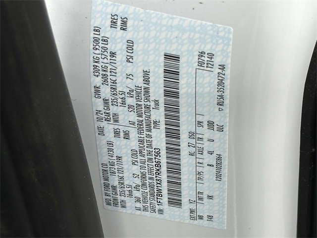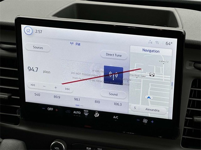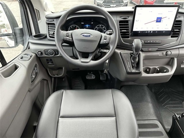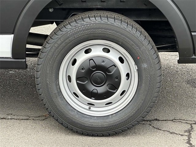 Load Area Protection Package (Front & Rear Vinyl Floor Covering), Order Code 101A, 2 Additional Keys (4 Total), 4 Speakers, 4-Wheel Disc Brakes, 4.10 Limited-Slip Axle Ratio, ABS brakes, Air Conditioning, AM/FM radio, AM/FM Stereo, Auto High-beam Headlights, Brake assist, Dark Palazzo Gray Vinyl Bucket Seats, Delay-off headlights, Digital Rearview Mirror, Driver door bin, Driver's Seat Mounted Armrest, Dual front impact airbags, Dual front side impact airbags, Electronic Air Temperature Control, Electronic Stability Control, Exterior Parking Camera Rear, Front anti-roll bar, Front Bucket Seats, Front License Plate Bracket, Front reading lights, Front wheel independent suspension, Fully automatic headlights, High Resolution Digital Camera, Illuminated entry, Low tire pressure warning, Occupant sensing airbag, Overhead airbag, Panic alarm, Passenger cancellable airbag, Passenger door bin, Power door mirrors, Power steering, Power windows, Radio: AM/FM Stereo w/SYNC 4, Remote keyless entry, Reverse Sensing System, Short-Arm Manual-Folding Power Adjust Mirrors, Speed control, Steering wheel mounted audio controls, Tachometer, Telescoping steering wheel, Tilt steering wheel, Traction control, Variably intermittent wipers, Vinyl Front Bucket Seats, and Wheels: 16" Silver Steel w/Black Hubcap. 2024 Ford Transit-350 3.5L V6 Flex Fuel Oxford White