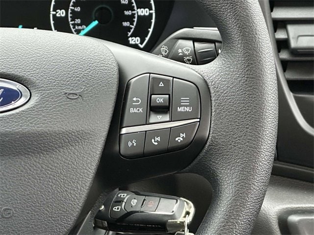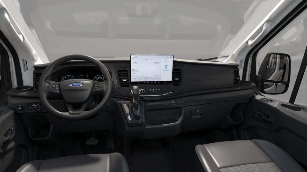 Heavy-Duty Trailer Tow Package (Frame Mounted Hitch Receiver and Tow/Haul Mode w/Trailering Wiring Provisions), Load Area Protection Package (Front & Rear Vinyl Floor Covering), Order Code 101A, 2 Additional Keys (4 Total), 3.73 Limited-Slip Axle Ratio, 4 Speakers, 4-Wheel Disc Brakes, 4.10 Limited-Slip Axle Ratio, ABS brakes, Air Conditioning, AM/FM radio, AM/FM Stereo, Auto High-beam Headlights, Brake assist, Dark Palazzo Gray Vinyl Bucket Seats, Delay-off headlights, Digital Rearview Mirror, Driver door bin, Driver's Seat Mounted Armrest, Dual front impact airbags, Dual front side impact airbags, Electronic Air Temperature Control, Electronic Stability Control, Exterior Parking Camera Rear, Front anti-roll bar, Front Bucket Seats, Front License Plate Bracket, Front reading lights, Front wheel independent suspension, Fully automatic headlights, Heavy-Duty Front Axle, High Resolution Digital Camera, Illuminated entry, Low tire pressure warning, Occupant sensing airbag, Overhead airbag, Panic alarm, Passenger cancellable airbag, Passenger door bin, Power door mirrors, Power steering, Power windows, Radio: AM/FM Stereo w/SYNC 4, Remote keyless entry, Reverse Sensing System, Short-Arm Manual-Folding Power Adjust Mirrors, Speed control, Steering wheel mounted audio controls, Tachometer, Telescoping steering wheel, Tilt steering wheel, Traction control, Variably intermittent wipers, Vinyl Front Bucket Seats, Wheels: 16" Silver Steel w/Black Hubcap, and Wheels: 16" Silver Steel w/Silver Hubcaps. 2024 Ford Transit-350 EcoBoost 3.5L V6 GTDi DOHC 24V Twin Turbocharged Oxford White