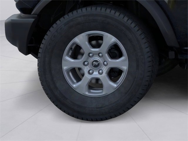 Equipment Group 222A Mid Package (2-Door Intelligent Access w/Lock/Unlock, Ambient Footwell Lighting, Connected Navigation, Dr & Pass Illuminated Sliding Visor Vanity Mirrors, Dual Smart Charging USB Ports, Dual-Zone Electronic Automatic Temperature Control, Front Row Heated Seats, Power Outlet - Back Side of Center Floor Console, and Rear Parking Sensors), 4-Wheel Disc Brakes, 4.46 Axle Ratio, 7 Speakers, ABS brakes, Air Conditioning, Alloy wheels, AM/FM radio: SiriusXM with 360L, AM/FM Stereo, Auto High-Beam Headlamps, Auto High-beam Headlights, BLIS Blind Spot Information System, Brake assist, Carbonized Gray Molded-In-Color Hard Top, Cloth Bucket Seats, Compass, Delay-off headlights, Driver door bin, Driver vanity mirror, Dual front impact airbags, Dual front side impact airbags, Electronic Stability Control, Emergency communication system: 911 Assist, Exterior Parking Camera Rear, Front anti-roll bar, Front Bucket Seats, Front Center Armrest, Front License Plate Bracket, Front reading lights, Front wheel independent suspension, Fully automatic headlights, Hard Top Sound Deadening Headliner, Heated door mirrors, Illuminated entry, Integrated roll-over protection, Internet access capable: FordPass Connect, Lane-Keeping System, Leather Shift Knob, Low tire pressure warning, Occupant sensing airbag, Outside temperature display, Overhead airbag, Overhead console, Panic alarm, Passenger door bin, Passenger vanity mirror, Power door mirrors, Power steering, Power windows, Pre-Collision Assist w/Automatic Emergency Braking, Radio data system, Rear-View Camera, Rear-Window Defroster & Washer, Remote keyless entry, Remote Start System, Security system, SiriusXM w/360L, Speed control, Split folding rear seat, Steering wheel mounted audio controls, SYNC 4, Tachometer, Telescoping steering wheel, Tilt steering wheel, Traction control, Trip computer, Variably intermittent wipers, and Wheels: 17" Carbonized Gray-Painted Aluminum. 2025 Ford Bronco 2.3L EcoBoost I-4 Shadow Black