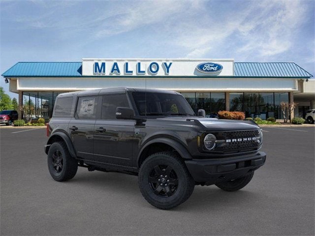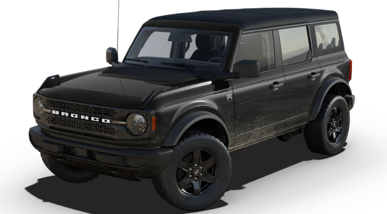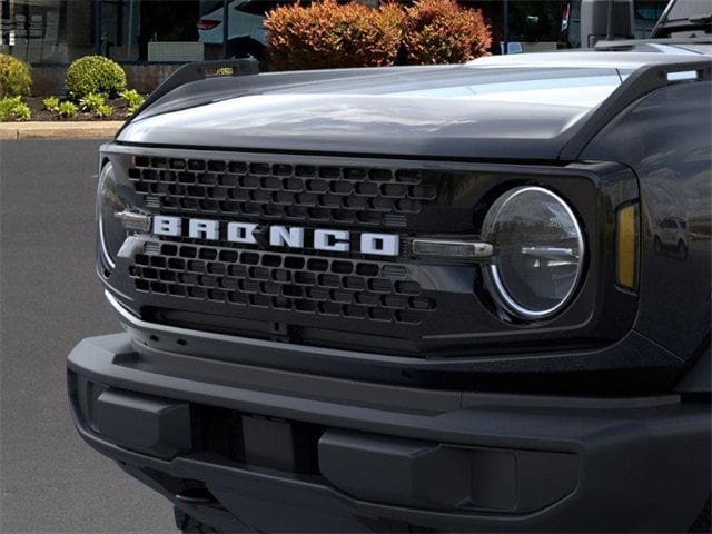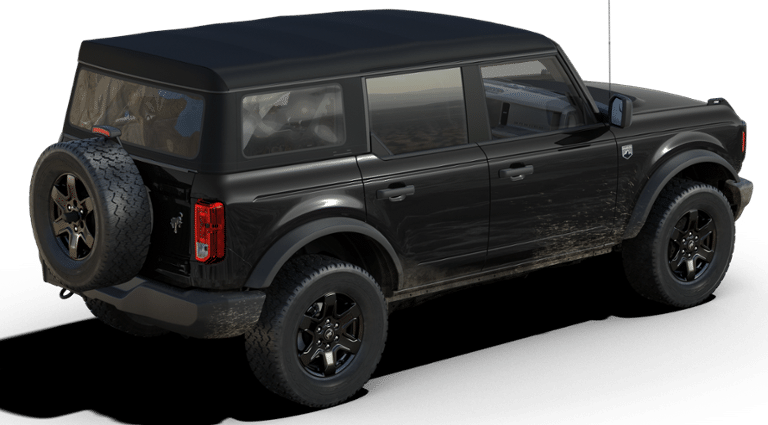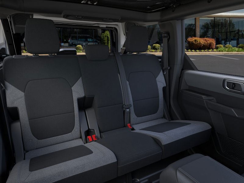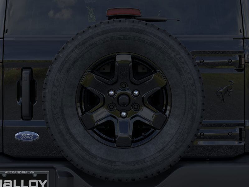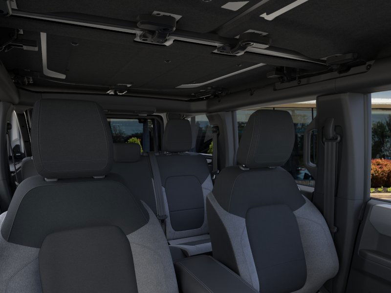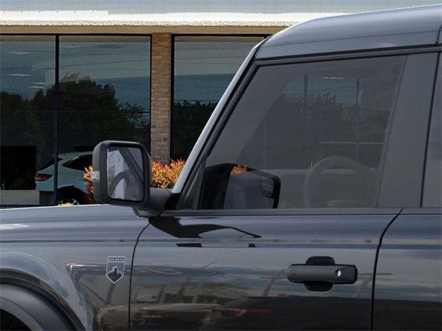 Black Appearance Package (Black Molded-In-Color Door Handles, Black Molded-In-Color Fender Flares, Black Molded-In-Color Sideview Mirror Caps, and Black-Painted Molded-In-Color Grille), Equipment Group 222A Mid Package (2-Door Intelligent Access w/Lock/Unlock, Ambient Footwell Lighting, Connected Navigation, Dr & Pass Illuminated Sliding Visor Vanity Mirrors, Dual Smart Charging USB Ports, Dual-Zone Electronic Automatic Temperature Control, Front Row Heated Seats, Power Outlet - Back Side of Center Floor Console, and Rear Parking Sensors), 4-Wheel Disc Brakes, 4.46 Axle Ratio, 7 Speakers, ABS brakes, Air Conditioning, Alloy wheels, AM/FM radio: SiriusXM with 360L, AM/FM Stereo, Auto High-Beam Headlamps, Auto High-beam Headlights, BLIS Blind Spot Information System, Brake assist, Cloth Bucket Seats, Compass, Delay-off headlights, Driver door bin, Driver vanity mirror, Dual front impact airbags, Dual front side impact airbags, Electronic Stability Control, Emergency communication system: 911 Assist, Exterior Parking Camera Rear, Front anti-roll bar, Front Bucket Seats, Front Center Armrest, Front License Plate Bracket, Front reading lights, Front wheel independent suspension, Fully automatic headlights, Hard Top Sound Deadening Headliner, Heated door mirrors, Illuminated entry, Integrated roll-over protection, Lane-Keeping System, Leather Shift Knob, Low tire pressure warning, Occupant sensing airbag, Outside temperature display, Overhead airbag, Overhead console, Panic alarm, Passenger door bin, Passenger vanity mirror, Power door mirrors, Power steering, Power windows, Pre-Collision Assist w/Automatic Emergency Braking, Radio data system, Rear-View Camera, Rear-Window Defroster & Washer, Remote keyless entry, Remote Start System, Security system, Shadow Black Painted Hard Top, SiriusXM w/360L, Speed control, Split folding rear seat, Steering wheel mounted audio controls, SYNC 4, Tachometer, Telescoping steering wheel, Tilt steering wheel, Traction control, Trip computer, Variably intermittent wipers, Wheels: 17" Black High Gloss Painted Aluminum, and Wheels: 17" Carbonized Gray-Painted Aluminum. 2025 Ford Bronco 2.3L EcoBoost I-4 Shadow Black
