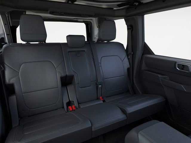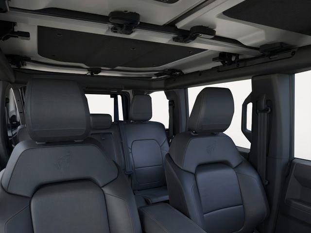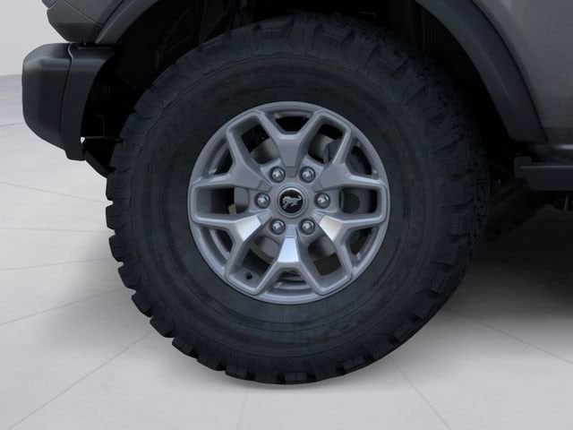 Equipment Group 334A Lux Package (2-Door Intelligent Access w/Lock/Unlock, 360-Degree Camera, Adaptive Cruise Control, Ambient Footwell Lighting, Connected Navigation, Dr & Pass Illuminated Sliding Visor Vanity Mirrors, Dual Smart Charging USB Ports, Dual-Zone Electronic Automatic Temperature Control, Evasive Steering Assist, Front Parking Sensors, Front Row Heated Seats, Information on Demand Panel, Power Outlet - Back Side of Center Floor Console, Radio: B&O Sound System by Bang & Olufsen, Rear Parking Sensors, Sideview Mirrors, and Universal Garage Door Opener), 4-Wheel Disc Brakes, 4.7 Axle Ratio, 7 Speakers, ABS brakes, Air Conditioning, Alloy wheels, AM/FM radio: SiriusXM with 360L, AM/FM Stereo, Auto High-Beam Headlamps, Auto High-beam Headlights, Auto-dimming Rear-View mirror, BLIS Blind Spot Information System, Body Color-Painted Hard Top, Brake assist, Compass, Delay-off headlights, Driver door bin, Driver vanity mirror, Dual front impact airbags, Dual front side impact airbags, Electronic Stability Control, Emergency communication system: 911 Assist, Exterior Parking Camera Rear, Front anti-roll bar, Front Bucket Seats, Front Center Armrest, Front fog lights, Front License Plate Bracket, Front reading lights, Front wheel independent suspension, Fully automatic headlights, Hard Top Sound Deadening Headliner, Heated door mirrors, Heated front seats, Heated steering wheel, Illuminated entry, Integrated roll-over protection, Internet access capable: FordPass Connect, Lane-Keeping System, Leather Shift Knob, Leather-Trimmed/Vinyl Bucket Seats, Low tire pressure warning, Marine Grade Vinyl Heated Bucket Seats, Occupant sensing airbag, Outside temperature display, Overhead airbag, Overhead console, Panic alarm, Passenger door bin, Passenger vanity mirror, Power door mirrors, Power steering, Power windows, Pre-Collision Assist w/Automatic Emergency Braking, Radio data system, Rear-View Camera, Rear-Window Defroster & Washer, Remote keyless entry, Remote Start System, Security system, SiriusXM w/360L, Speed control, Split folding rear seat, Steering wheel mounted audio controls, SYNC 4, Tachometer, Telescoping steering wheel, Tilt steering wheel, Traction control, Trip computer, Variably intermittent wipers, Voltmeter, and Wheels: 17" Carbonized Gray-Painted Aluminum. 2025 Ford Bronco 2.7L EcoBoost V6 Carbonized Gray Metallic