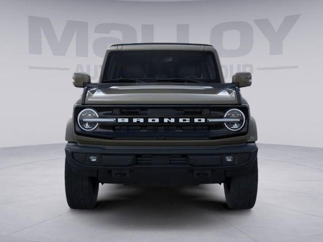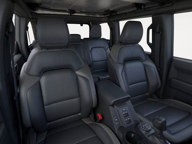 Equipment Group 314A Lux Package (360-Degree Camera, Adaptive Cruise Control, Evasive Steering Assist, Front Parking Sensors, Information on Demand Panel, Radio: B&O Sound System by Bang & Olufsen, Sideview Mirrors, and Universal Garage Door Opener), 18" Bright Machined Aluminum Wheels, 3.73 Axle Ratio, 4-Wheel Disc Brakes, 7 Speakers, ABS brakes, Air Conditioning, Alloy wheels, AM/FM radio: SiriusXM with 360L, AM/FM Stereo, Auto High-beam Headlights, Auto-dimming Rear-View mirror, Automatic temperature control, Brake assist, Compass, Connected Navigation, Delay-off headlights, Driver door bin, Driver vanity mirror, Dual front impact airbags, Dual front side impact airbags, Electronic Stability Control, Emergency communication system: 911 Assist, Exterior Parking Camera Rear, Front anti-roll bar, Front Bucket Seats, Front Center Armrest, Front dual zone A/C, Front fog lights, Front License Plate Bracket, Front reading lights, Front wheel independent suspension, Fully automatic headlights, Heated door mirrors, Heated front seats, Heated Leather-Trimmed/Vinyl Bucket Seats, Heated steering wheel, Illuminated entry, Integrated roll-over protection, Leather Shift Knob, Low tire pressure warning, Navigation system: Connected Navigation, Occupant sensing airbag, Outside temperature display, Overhead airbag, Overhead console, Panic alarm, Passenger door bin, Passenger vanity mirror, Power door mirrors, Power driver seat, Power passenger seat, Power steering, Power windows, Radio data system, Rear seat center armrest, Remote keyless entry, Security system, SiriusXM w/360L, Speed control, Split folding rear seat, Steering wheel mounted audio controls, SYNC 4, Tachometer, Telescoping steering wheel, Tilt steering wheel, Traction control, Trip computer, Variably intermittent wipers, and Voltmeter. 2025 Ford Bronco 2.7L EcoBoost V6 Marsh Gray