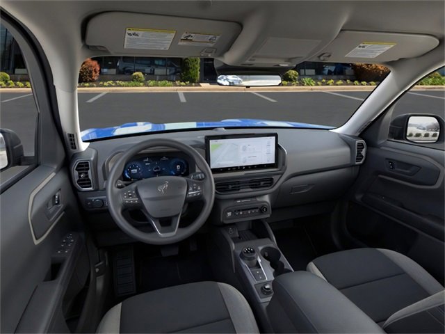 Equipment Group 200A, 4-Wheel Disc Brakes, 6 Speakers, ABS brakes, Air Conditioning, Alloy wheels, AM/FM radio: SiriusXM, AM/FM Stereo, Auto High-beam Headlights, Automatic temperature control, Brake assist, Cloth w/Easy-to-Clean Front Bucket Seats, Compass, Delay-off headlights, Driver door bin, Driver vanity mirror, Dual front impact airbags, Dual front side impact airbags, Electronic Stability Control, Emergency communication system: SYNC 4 911 Assist, Four wheel independent suspension, Front anti-roll bar, Front Bucket Seats, Front Center Armrest, Front License Plate Bracket, Front reading lights, Fully automatic headlights, Heated door mirrors, Illuminated entry, Knee airbag, Low tire pressure warning, Occupant sensing airbag, Outside temperature display, Overhead airbag, Overhead console, Panic alarm, Passenger door bin, Passenger vanity mirror, Power door mirrors, Power steering, Power windows, Radio data system, Rear anti-roll bar, Rear Parking Sensors, Rear reading lights, Rear seat center armrest, Rear window defroster, Rear window wiper, Remote keyless entry, Security system, SiriusXM, Speed control, Speed-sensing steering, Speed-Sensitive Wipers, Split folding rear seat, Steering wheel mounted audio controls, SYNC 4 w/Enhanced Voice Recognition, Tachometer, Telescoping steering wheel, Tilt steering wheel, Traction control, Trip computer, Variably intermittent wipers, and Wheels: 17" Carbonized Gray-Painted Aluminum. 2025 Ford Bronco Sport 1.5L EcoBoost Velocity Blue Metallic