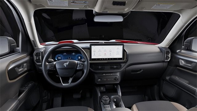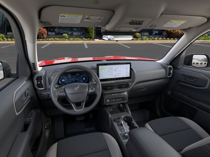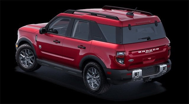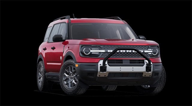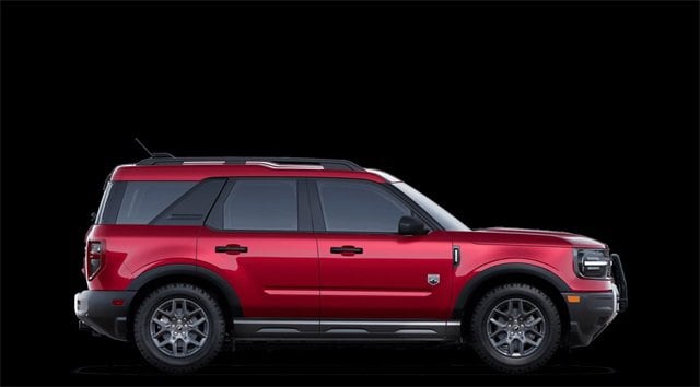 Black Diamond Off-Road Package (110V/400W AC Power Outlet, 2nd Row Carpeted Seatback, Auxiliary Switches & Wiring, Brush Guard, Cargo Management System (Shelf/Divider/Table), Cargo Mat, Class II Trailer Tow Pack w/Trailer Sway Control, Fender Tie Downs, Front & Rear Black Bumpers, Interior Grab Handle, Recovery Hooks, and Wheels: 17" Carbonized Gray Painted Aluminum), Equipment Group 200A, 4-Wheel Disc Brakes, 6 Speakers, ABS brakes, Air Conditioning, Alloy wheels, AM/FM radio: SiriusXM, AM/FM Stereo, Auto High-beam Headlights, Automatic temperature control, Brake assist, Cloth w/Easy-to-Clean Front Bucket Seats, Compass, Delay-off headlights, Driver door bin, Driver vanity mirror, Dual front impact airbags, Dual front side impact airbags, Electronic Stability Control, Emergency communication system: SYNC 4 911 Assist, Four wheel independent suspension, Front & Rear Floor Liners w/o Carpet Mats, Front anti-roll bar, Front Bucket Seats, Front Center Armrest, Front License Plate Bracket, Front reading lights, Fully automatic headlights, Heated door mirrors, Illuminated entry, Knee airbag, Low tire pressure warning, Occupant sensing airbag, Outside temperature display, Overhead airbag, Overhead console, Panic alarm, Passenger door bin, Passenger vanity mirror, Power door mirrors, Power steering, Power windows, Radio data system, Rear anti-roll bar, Rear Parking Sensors, Rear reading lights, Rear seat center armrest, Rear window defroster, Rear window wiper, Remote keyless entry, Security system, SiriusXM, Speed control, Speed-sensing steering, Speed-Sensitive Wipers, Split folding rear seat, Steering wheel mounted audio controls, SYNC 4 w/Enhanced Voice Recognition, Tachometer, Telescoping steering wheel, Tilt steering wheel, Traction control, Trip computer, Variably intermittent wipers, and Wheels: 17" Carbonized Gray-Painted Aluminum. 2025 Ford Bronco Sport 1.5L EcoBoost Ruby Red Metallic Tinted Clearcoat