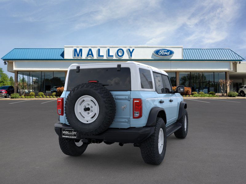 Equipment Group 662A Mid Package, 4-Wheel Disc Brakes, 7 Speakers, ABS brakes, Air Conditioning, Alloy wheels, AM/FM radio: SiriusXM with 360L, AM/FM Stereo, Auto High-beam Headlights, Auto-dimming Rear-View mirror, Automatic temperature control, Brake assist, Compass, Connected Navigation, Convertible HardTop, Convertible roof lining, Delay-off headlights, Driver door bin, Driver vanity mirror, Dual front impact airbags, Dual front side impact airbags, Electronic Stability Control, Emergency communication system: 911 Assist, Exterior Parking Camera Rear, Front anti-roll bar, Front Bucket Seats, Front Center Armrest, Front dual zone A/C, Front fog lights, Front License Plate Bracket, Front reading lights, Front wheel independent suspension, Fully automatic headlights, Glass rear window, Heated door mirrors, Heated front seats, Heated steering wheel, Illuminated entry, Integrated roll-over protection, Leather Shift Knob, Low tire pressure warning, Navigation system: Connected Navigation, Occupant sensing airbag, Outside temperature display, Overhead airbag, Overhead console, Panic alarm, Passenger door bin, Passenger vanity mirror, Plaid Cloth Front Heated Bucket Seats, Power door mirrors, Power steering, Power windows, Radio data system, Rear window defroster, Rear window wiper, Remote keyless entry, Security system, SiriusXM w/360L, Speed control, Split folding rear seat, Steering wheel mounted audio controls, SYNC 4, Tachometer, Telescoping steering wheel, Tilt steering wheel, Traction control, Trip computer, Variably intermittent wipers, and Wheels: 17" Unique White. 2025 Ford Bronco 2.7L EcoBoost V6 Robins Egg Blue