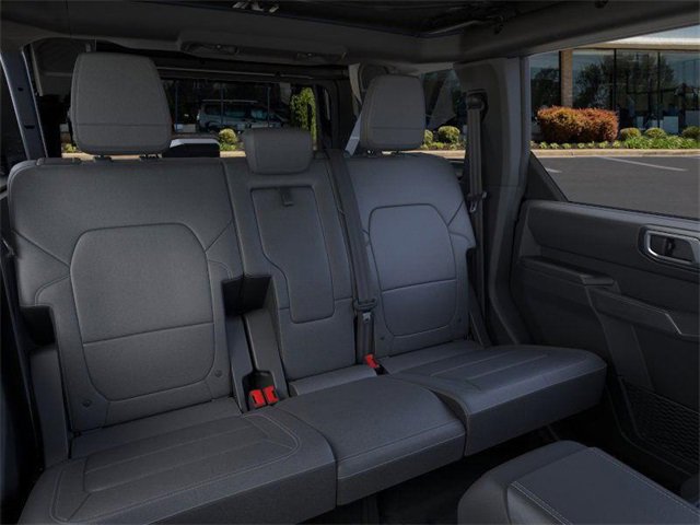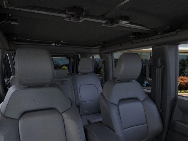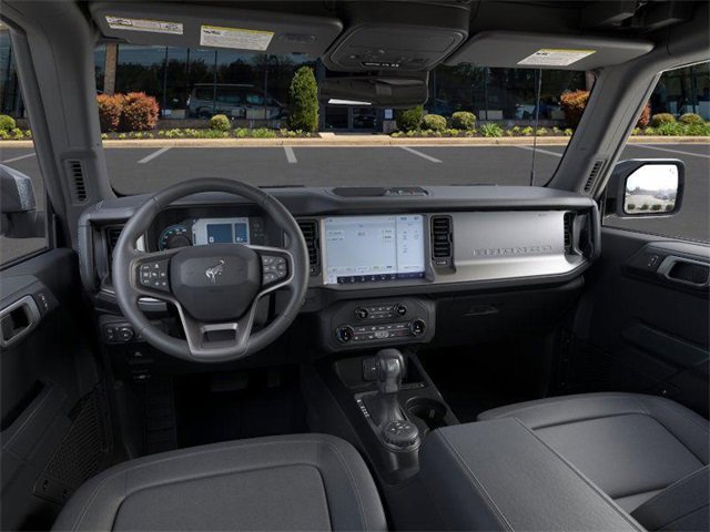 Equipment Group 314A Lux Package (360-Degree Camera, Adaptive Cruise Control, Evasive Steering Assist, Front Parking Sensors, Information on Demand Panel, Radio: B&O Sound System by Bang & Olufsen, Sideview Mirrors, and Universal Garage Door Opener), 18" Bright Machined Aluminum Wheels, 3.73 Axle Ratio, 4-Wheel Disc Brakes, 7 Speakers, ABS brakes, Air Conditioning, Alloy wheels, AM/FM radio: SiriusXM with 360L, AM/FM Stereo, Auto High-beam Headlights, Auto-dimming Rear-View mirror, Automatic temperature control, Brake assist, Compass, Connected Navigation, Delay-off headlights, Driver door bin, Driver vanity mirror, Dual front impact airbags, Dual front side impact airbags, Electronic Stability Control, Emergency communication system: 911 Assist, Exterior Parking Camera Rear, Front anti-roll bar, Front Bucket Seats, Front Center Armrest, Front dual zone A/C, Front fog lights, Front License Plate Bracket, Front reading lights, Front wheel independent suspension, Fully automatic headlights, Hard Top Sound Deadening Headliner, Heated door mirrors, Heated front seats, Heated Leather-Trimmed/Vinyl Bucket Seats, Heated steering wheel, Illuminated entry, Integrated roll-over protection, Internet access capable: FordPass Connect, Leather Shift Knob, Low tire pressure warning, Navigation system: Connected Navigation, Occupant sensing airbag, Outside temperature display, Overhead airbag, Overhead console, Painted Hard Top, Panic alarm, Passenger door bin, Passenger vanity mirror, Power door mirrors, Power driver seat, Power passenger seat, Power steering, Power windows, Radio data system, Rear seat center armrest, Rear-Window Defroster & Washer, Remote keyless entry, Security system, SiriusXM w/360L, Speed control, Split folding rear seat, Steering wheel mounted audio controls, SYNC 4, Tachometer, Telescoping steering wheel, Tilt steering wheel, Traction control, Trip computer, Variably intermittent wipers, and Voltmeter. Recent Arrival! 2025 Ford Bronco 2.7L EcoBoost V6 Azure Gray Metallic Tri-Coat