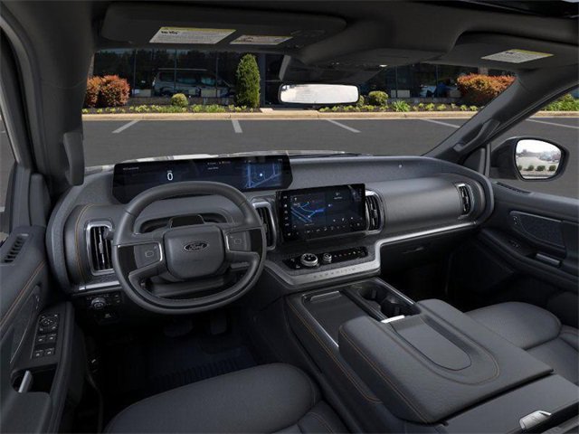 Equipment Group 501A High Package (2nd Row Power-Folding Captain's Chairs), 10 Speakers, 3.73 Axle Ratio, 3rd row seats: split-bench, 4-Wheel Disc Brakes, ABS brakes, Adjustable pedals, Air Conditioning, Alloy wheels, AM/FM radio: SiriusXM with 360L, Apple CarPlay/Android Auto, Auto High-beam Headlights, Auto-dimming door mirrors, Auto-dimming Rear-View mirror, Automatic temperature control, BlueCruise Equipped (1-Year Plan), Brake assist, Bumpers: body-color, Compass, Delay-off headlights, Driver door bin, Driver vanity mirror, Dual front impact airbags, Dual front side impact airbags, Electronic Stability Control, Emergency communication system: 911 Assist, Exterior Parking Camera Rear, Four wheel independent suspension, Front anti-roll bar, Front Bucket Seats, Front Center Armrest, Front dual zone A/C, Front fog lights, Front License Plate Bracket, Front reading lights, Fully automatic headlights, Garage door transmitter, Heated & Ventilated Leather Front Captain's Chairs, Heated door mirrors, Heated front seats, Heated steering wheel, Illuminated entry, Leather steering wheel, Low tire pressure warning, Memory seat, Navigation System, Occupant sensing airbag, Outside temperature display, Overhead airbag, Overhead console, Panic alarm, Passenger door bin, Passenger vanity mirror, Pedal memory, Power door mirrors, Power driver seat, Power moonroof: Vista Roof, Power passenger seat, Power steering, Power windows, Radio data system, Radio: B&O Sound System by Bang & Olufsen, Rear air conditioning, Rear anti-roll bar, Rear reading lights, Rear window defroster, Rear window wiper, Reclining 3rd row seat, Remote keyless entry, Security system, SiriusXM w/360L, Speed control, Speed-sensing steering, Speed-Sensitive Wipers, Split folding rear seat, Spoiler, Steering wheel memory, Steering wheel mounted audio controls, Tachometer, Telescoping steering wheel, Tilt steering wheel, Traction control, Trip computer, Turn signal indicator mirrors, Variably intermittent wipers, Ventilated front seats, Voltmeter, and Wheels: 18" Dark Carbonized Gray Painted Aluminum. Recent Arrival! 2025 Ford Expedition 3.5L V6 Agate Black Metallic