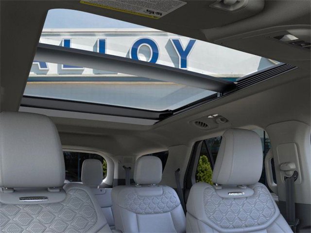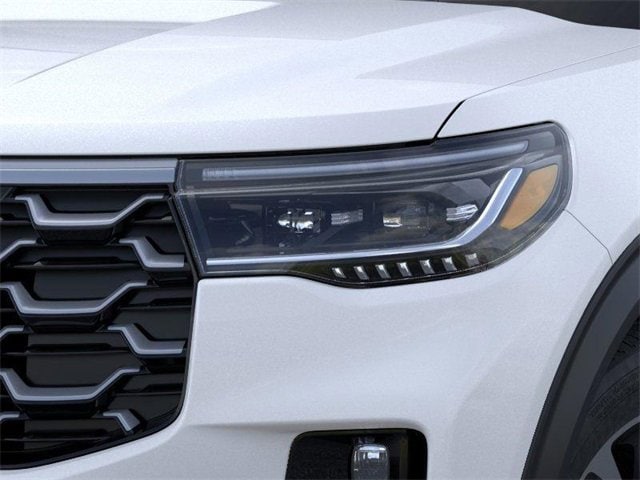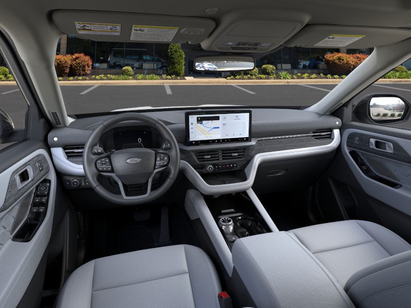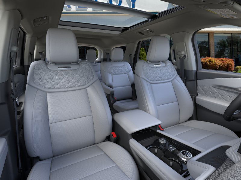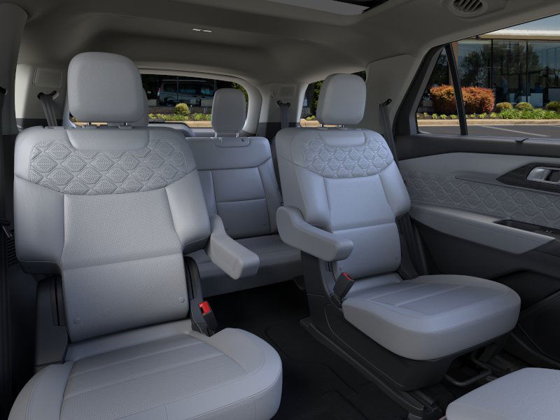 Equipment Group 600A Standard Package, Lux Leather Package (Leather Seating Surfaces Sport Captain Chairs, Platinum Badges on Front Row Seats, Quilting & Stitching on Door Panels, and Quilting & Stitching on Seats), Ultimate Package (Wheels: 21" Dark Alloy-Painted Machined Aluminum), 14 Speakers, 3rd row seats: bench, 4-Wheel Disc Brakes, ABS brakes, ActiveX Trimmed Sport Captain's Chairs, Air Conditioning, Alloy wheels, AM/FM radio: SiriusXM with 360L, Apple CarPlay/Android Auto, Auto High-beam Headlights, Auto-dimming door mirrors, Auto-dimming Rear-View mirror, Automatic temperature control, Brake assist, Bumpers: body-color, Compass, Delay-off headlights, Driver door bin, Driver vanity mirror, Dual front impact airbags, Dual front side impact airbags, Electronic Stability Control, Emergency communication system: 911 Assist, Exterior Parking Camera Rear, Ford BlueCruise Equipped (1-Year Plan) (DISC), Four wheel independent suspension, Front anti-roll bar, Front Bucket Seats, Front Center Armrest, Front dual zone A/C, Front fog lights, Front License Plate Bracket, Front reading lights, Fully automatic headlights, Garage door transmitter, Heated door mirrors, Heated front seats, Heated rear seats, Heated steering wheel, Illuminated entry, Knee airbag, Leather steering wheel, Low tire pressure warning, Memory seat, Navigation System, Occupant sensing airbag, Outside temperature display, Overhead airbag, Overhead console, Panic alarm, Passenger door bin, Passenger vanity mirror, Power door mirrors, Power driver seat, Power Liftgate, Power moonroof, Power passenger seat, Power steering, Power windows, Radio data system, Radio: B&O Sound System by Bang & Olufsen w/HD, Rain sensing wipers, Rear air conditioning, Rear anti-roll bar, Rear reading lights, Rear window defroster, Rear window wiper, Remote keyless entry, SecuriCode Keyless Entry Keypad, Security system, Speed control, Speed-sensing steering, Speed-Sensitive Wipers, Split folding rear seat, Spoiler, Steering wheel mounted audio controls, Tachometer, Telescoping steering wheel, Tilt steering wheel, Traction control, Trip computer, Turn signal indicator mirrors, Variably intermittent wipers, Ventilated front seats, and Wheels: 20" Luster Nickel-Painted Aluminum. 2025 Ford Explorer 3.0L EcoBoost V6 Star White Metallic Tri-Coat
