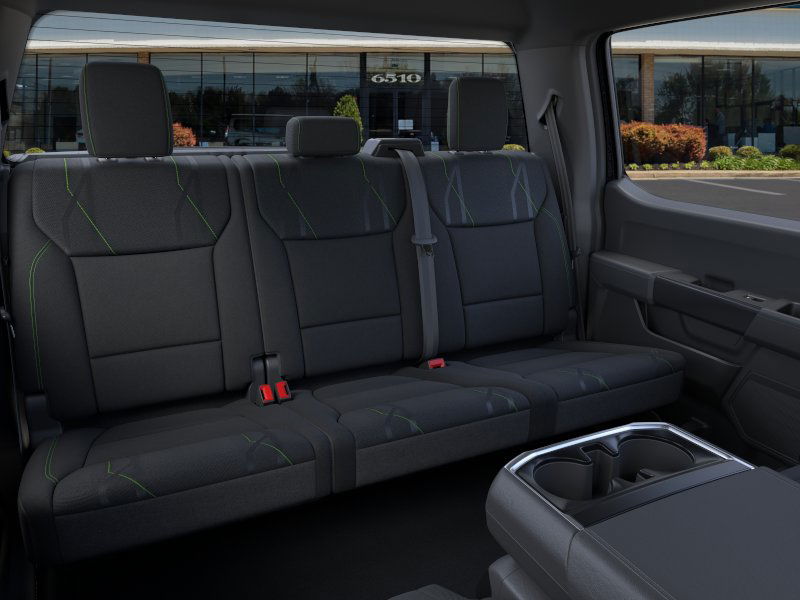 Equipment Group 200A Mid (LED Fog Lamps w/LED Cornering Lamp and Wheels: 20" Dark Gray w/Machined Aluminum), GVWR: 6,650 lbs Payload Package, 4-Wheel Disc Brakes, 6 Speakers, ABS brakes, Air Conditioning, Alloy wheels, AM/FM radio: SiriusXM with 360L, Auto High-beam Headlights, Brake assist, Bumpers: body-color, Compass, Delay-off headlights, Driver door bin, Dual front impact airbags, Dual front side impact airbags, Electronic Stability Control, Emergency communication system: SYNC 4 911 Assist, Front anti-roll bar, Front Bucket Seats, Front Center Armrest, Front License Plate Bracket, Front reading lights, Front wheel independent suspension, Fully automatic headlights, Heated door mirrors, Illuminated entry, Low tire pressure warning, Occupant sensing airbag, Outside temperature display, Overhead airbag, Overhead console, Panic alarm, Passenger door bin, Passenger vanity mirror, Power door mirrors, Power steering, Power windows, Radio data system, Radio: AM/FM Stereo w/SiriusXM 360L, Rear Parking Sensors, Rear step bumper, Rear window defroster, Remote keyless entry, Security system, Speed control, Split folding rear seat, Steering wheel mounted audio controls, SYNC 4 w/Enhanced Voice Recognition, Tachometer, Telescoping steering wheel, Tilt steering wheel, Traction control, Trip computer, Unique Sport Cloth 40/Console/40 Front-Seats, Variably intermittent wipers, Voltmeter, and Wheels: 18" Gloss Black. 2025 Ford F-150 2.7L V6 EcoBoost Agate Black Metallic