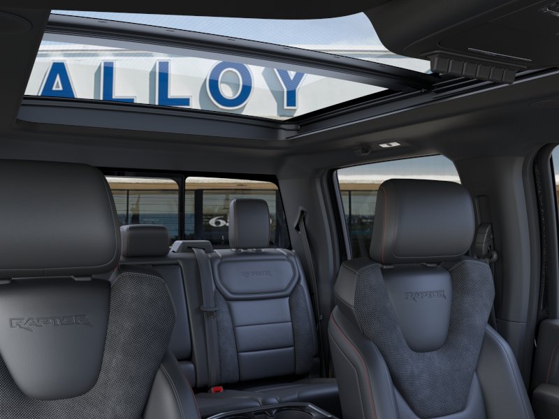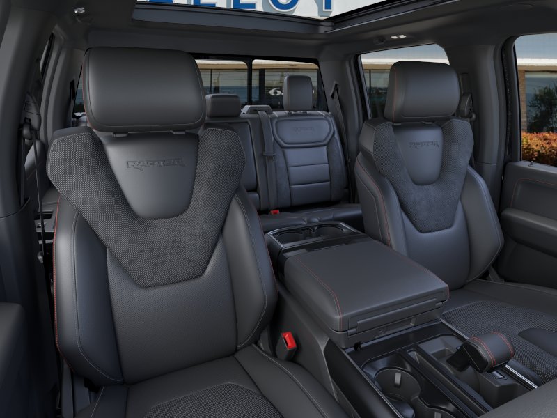 Equipment Group 802A Raptor 37 (Carbon Fiber Interior Appliques, Dual Valve Shocks, Modular Front Bumper, RECARO Alcantara Suede Front Seats, and Wheels: Raptor 37 Unique 17" Cast Aluminum), 14 Speakers, 17" Cast Aluminum Wheels, 4-Wheel Disc Brakes, ABS brakes, Adjustable pedals, Air Conditioning, Alloy wheels, AM/FM radio: SiriusXM with 360L, Auto High-beam Headlights, Auto tilt-away steering wheel, Auto-dimming door mirrors, Auto-dimming Rear-View mirror, Automatic temperature control, Brake assist, Bumpers: body-color, Compass, Delay-off headlights, Driver door bin, Driver vanity mirror, Dual front impact airbags, Dual front side impact airbags, Electronic Locking w/4.10 Axle Ratio, Electronic Stability Control, Emergency communication system: SYNC 4 911 Assist, Front anti-roll bar, Front Bucket Seats, Front Center Armrest, Front dual zone A/C, Front fog lights, Front License Plate Bracket, Front reading lights, Front wheel independent suspension, Fully automatic headlights, Garage door transmitter, Heads-Up Display, Heated door mirrors, Heated front seats, Heated rear seats, Heated steering wheel, Illuminated entry, Internet access capable: FordPass Connect 5G, Lane Departure Warning System, Leather steering wheel, Leather Trimmed Seats, Low tire pressure warning, Memory seat, Navigation system: Connected Navigation, Occupant sensing airbag, Outside temperature display, Overhead airbag, Overhead console, Panic alarm, Passenger door bin, Passenger vanity mirror, Pedal memory, Power door mirrors, Power driver seat, Power passenger seat, Power steering, Power windows, Radio data system, Radio: B&O Unleashed Sound System by Bang & Olufsen, Rain sensing wipers, Rear reading lights, Rear step bumper, Rear window defroster, Remote keyless entry, Security system, Speed control, Speed-sensing steering, Split folding rear seat, Steering wheel memory, Steering wheel mounted audio controls, SYNC 4 w/Enhanced Voice Recognition, Tachometer, Telescoping steering wheel, Tilt steering wheel, Traction control, Trip computer, Turn signal indicator mirrors, Twin Panel Moonroof, Variably intermittent wipers, and Ventilated front seats. Recent Arrival! 2025 Ford F-150 3.5L V6 EcoBoost Agate Black Metallic