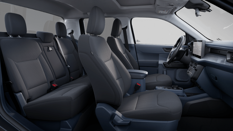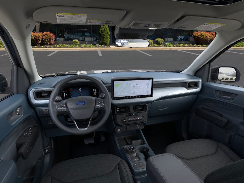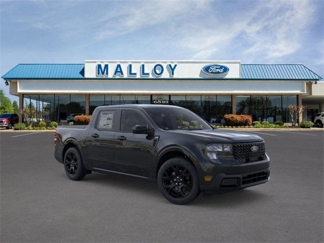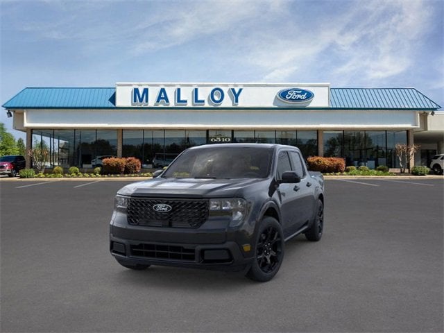 4K Tow Package (Trailer Brake Controller, Trailer Hitch (Class III) 2" Receiver, Transmission Oil Cooler, and Upgraded Cooling Fan), Black Appearance Package (Black Grille, Black Interior Accents, Black Painted Mirrors, Front & Back Black Edition Ford Logo, Unique Cloth Front Bucket Seats w/Black Appearance, and Wheels: 19" Black Painted Aluminum), Equipment Group 302A, Ford Co-Pilot360 1.0 (Auto High Beams, BLIS w/Cross-Traffic Alert, Cross Traffic Brake Assist, Evasive Steering Assist, Intersection Assist, Lane-Keeping System, Power Glass Manual-Folding Mirrors, Pre-Collision Assist w/Automatic Emergency Braking, Rear Parking Sensors, and Rear-View Camera), XLT Luxury Package (400W Inverter w/USB Console Rear, Heated Mirror w/Painted Black Skull Caps, Heated Seats, LED Box Lighting, Remote Start System, and Soft Vinyl Wrapped Heated Steering Wheel), 2.91 Axle Ratio, 4-Wheel Disc Brakes, 6 Speakers, ABS brakes, Air Conditioning, Alloy wheels, AM/FM radio: SiriusXM with 360L, Apple CarPlay/Android Auto, Auto High-beam Headlights, Automatic temperature control, Brake assist, Bumpers: body-color, Compass, Delay-off headlights, Driver door bin, Driver vanity mirror, Dual front impact airbags, Dual front side impact airbags, Electronic Stability Control, Emergency communication system: SYNC 4 911 Assist, Exterior Parking Camera Rear, Four wheel independent suspension, Front anti-roll bar, Front Bucket Seats, Front Center Armrest, Front reading lights, Fully automatic headlights, Higher Capacity Radiator, Illuminated entry, Knee airbag, Low tire pressure warning, Occupant sensing airbag, Outside temperature display, Overhead airbag, Overhead console, Panic alarm, Passenger door bin, Passenger vanity mirror, Power door mirrors, Power Moonroof, Power steering, Power windows, Radio data system, Radio: AM/FM Stereo w/6 Speakers, Rear anti-roll bar, Rear seat center armrest, Rear step bumper, Remote keyless entry, Security system, SiriusXM w/360L, Speed control, Speed-sensing steering, Steering wheel mounted audio controls, SYNC 4 w/Enhanced Voice Recognition, Telescoping steering wheel, Tilt steering wheel, Traction control, Trip computer, Unique Cloth Front Bucket Seats, and Wheels: 17" Carbonized Gray Painted Aluminum. 2025 Ford Maverick EcoBoost 2.0L I4 GTDi DOHC Turbocharged VCT Shadow Black