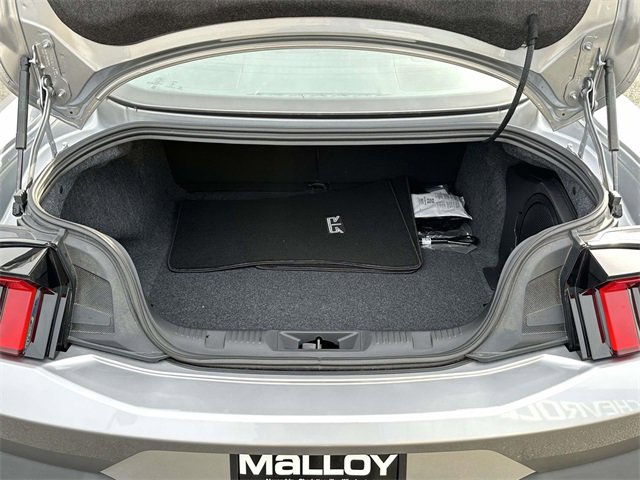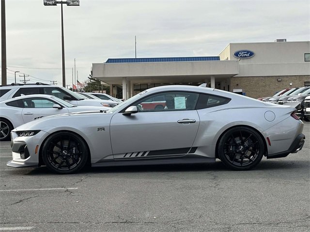 Equipment Group 401A High Package (Driver Seat & Mirrors Memory and Illuminated Door-Sill Scuff Plates), Ford Co-Pilot360 Assist+ (Connected Navigation and Pre-Collision Assist w/Automatic Emergency Braking), GT Performance Package (Black Brake Calipers w/White Logo, Black Painted Strut-Tower Brace, Brembo Brake System, Ebony Black Grille, Electric Hand-Operated Parking Brake (Drift Brake), Front Towing Hooks, Heavy-Duty Front Springs, Unique Chassis Tuning, Unique Stability Control, and Upsized Rear Sway Bars), Security Package (Active Anti-Theft System, Locking Center Console, and Wheel Locking Kit), 4-Wheel Disc Brakes, ABS brakes, Active Valve Performance Exhaust, Adaptive Cruise Control w/Stop & Go, Air Conditioning, Alloy wheels, AM/FM Stereo, Auto High-beam Headlights, Automatic temperature control, B&O Sound System by Bang & Olufsen w/12 Speakers, Brake assist, Brembo Brake System w/Performance Linings, Bumpers: body-color, Compass, Delay-off headlights, Driver door bin, Driver vanity mirror, Dual front impact airbags, Dual front side impact airbags, Electronic Stability Control, Emergency communication system: 911 Assist, Exterior Parking Camera Rear, Four wheel independent suspension, Front anti-roll bar, Front Bucket Seats, Front Center Armrest, Front dual zone A/C, Front reading lights, Fully automatic headlights, Illuminated entry, Instrument Panel w/Accent Stitch, Knee airbag, Lane-Keeping System w/Lane Keeping Aid, Leather Shift Knob, Leather steering wheel, Low tire pressure warning, Occupant sensing airbag, Outside temperature display, Overhead airbag, Overhead console, Painted Body Color Performance Raised Rear Wing, Panic alarm, Passenger door bin, Passenger vanity mirror, Power door mirrors, Power steering, Power windows, Radio data system, Rain sensing wipers, Rear anti-roll bar, Rear Parking Sensors, Rear window defroster, Remote keyless entry, Remote Start System, Speed control, Speed-sensing steering, Speed-Sensitive Wipers, Split folding rear seat, Spoiler, Sport steering wheel, Steering wheel mounted audio controls, SYNC 4, Tachometer, Telescoping steering wheel, Tilt steering wheel, Traction control, Trip computer, Variably intermittent wipers, Voltmeter, and Wheels: 19" x 8.5" Shadow Silver-Painted Aluminum. Recent Arrival! 2025 Ford Mustang 5.0L V8 Ti-VCT Iconic Silver Metallic