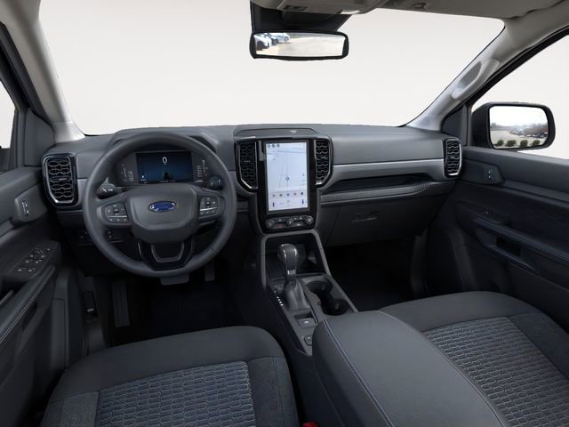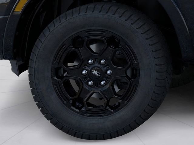 Black Appearance Package (Black Center Bar & Surround Grille, Black Rear Bumper, Body-Color Painted Front Fascia, Front & Rear Black Ford Ovals, Painted Body-Color Wheel Lip Molding, Unique Carpet Mats, and Wheels: 18" Black Painted), Equipment Group 300A Standard, Sport Appearance Package (Gray Painted Center Bar & Grille Surround, Gray Painted Front Fascia & Rear Bumper, and Sport Box Decal), Trailer Tow Package (Class IV Trailer Hitch Receiver), 3.73 Axle Ratio, 4-Wheel Disc Brakes, 6 Speakers, ABS brakes, Air Conditioning, Alloy wheels, AM/FM radio: SiriusXM, AM/FM Stereo, Auto High-beam Headlights, Auto-dimming Rear-View mirror, Black Running Boards, Blk SecuriCode Wireless Keyless Entry Keypad (DIO), Brake assist, Center Console In-Vehicle Safe, Cloth Front Bucket Seats, Compass, Delay-off headlights, Driver door bin, Driver vanity mirror, Dual front impact airbags, Dual front side impact airbags, Electronic Stability Control, Emergency communication system: SYNC 4 911 Assist, Front anti-roll bar, Front Bucket Seats, Front Center Armrest, Front fog lights, Front License Plate Bracket, Front reading lights, Front wheel independent suspension, Fully automatic headlights, Illuminated entry, Internet access capable: FordPass Connect 4G, Leather Shift Knob, Low tire pressure warning, Navigation system: Connected Navigation, Occupant sensing airbag, Outside temperature display, Overhead airbag, Overhead console, Panic alarm, Passenger door bin, Passenger vanity mirror, Power door mirrors, Power steering, Power windows, Rear reading lights, Rear seat center armrest, Rear step bumper, Rear window defroster, Remote keyless entry, Security system, SiriusXM Satellite Radio, Speed control, Speed-sensing steering, Steering wheel mounted audio controls, SYNC 4A w/Connected Navigation, Telescoping steering wheel, Tilt steering wheel, Tough Bed Spray-In Bedliner, Traction control, Trip computer, Variably intermittent wipers, Voltmeter, and Wheels: 17" Gray-Painted Aluminum. 2025 Ford Ranger 2.7L EcoBoost V6 Shadow Black