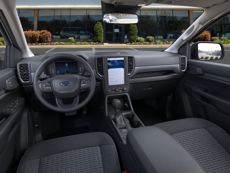 Equipment Group 100A Standard, STX Appearance Package (Halogen Fog Lamps, LED Reflector Headlamps, and STX Fender Badge), 4-Wheel Disc Brakes, 6 Speakers, ABS brakes, Air Conditioning, Alloy wheels, AM/FM radio, AM/FM Stereo, Auto High-beam Headlights, Brake assist, Bumpers: body-color, Carpet Floor Covering w/Carpet Floor Mats, Cloth Front Bucket Seats, Compass, Delay-off headlights, Driver door bin, Dual front impact airbags, Dual front side impact airbags, Electronic Stability Control, Emergency communication system: SYNC 4 911 Assist, Front anti-roll bar, Front Bucket Seats, Front Center Armrest, Front fog lights, Front License Plate Bracket, Front reading lights, Front wheel independent suspension, Fully automatic headlights, Illuminated entry, Low tire pressure warning, Occupant sensing airbag, Outside temperature display, Overhead airbag, Overhead console, Panic alarm, Passenger door bin, Power door mirrors, Power steering, Power windows, Rear reading lights, Rear seat center armrest, Rear step bumper, Remote keyless entry, Security system, Speed control, Speed-sensing steering, Steering wheel mounted audio controls, SYNC 4A, Telescoping steering wheel, Tilt steering wheel, Traction control, Trip computer, Variably intermittent wipers, Voltmeter, and Wheels: 17" Silver-Painted Aluminum. Recent Arrival! 2025 Ford Ranger EcoBoost 2.3L I4 GTDi DOHC Turbocharged VCT Oxford White