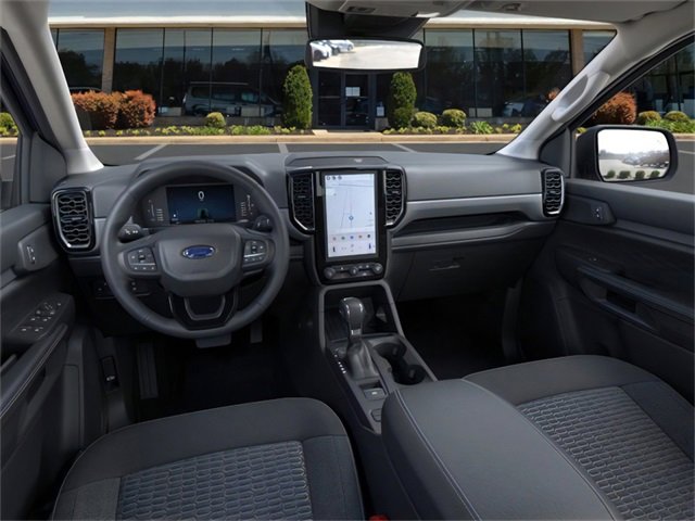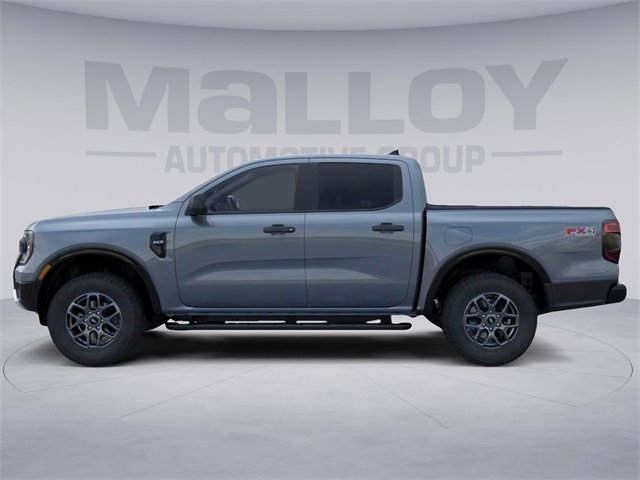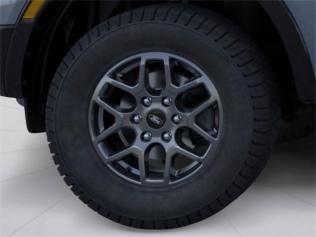 Convenience Package (120V/400W In-Cab & In-Bed Power Outlets and Wireless Charging Pad), Equipment Group 300A Standard, FX4 Off-Road Package (FX4 Off-Road Box Decal, FX4 Selectable Drive Modes, Off-Road Screen in Center Stack, Off-Road Tuned Shocks, and Trail Control), Sport Appearance Package (Gray Painted Center Bar & Grille Surround, Gray Painted Front Fascia & Rear Bumper, and Sport Box Decal), Trailer Tow Package (Class IV Trailer Hitch Receiver), 4-Wheel Disc Brakes, 6 Speakers, ABS brakes, Air Conditioning, Alloy wheels, AM/FM radio: SiriusXM, AM/FM Stereo, Auto High-beam Headlights, Auto-dimming Rear-View mirror, Black Running Boards, Brake assist, Cloth Front Bucket Seats, Compass, Delay-off headlights, Driver door bin, Driver vanity mirror, Dual front impact airbags, Dual front side impact airbags, Electronic Stability Control, Emergency communication system: SYNC 4 911 Assist, Front anti-roll bar, Front Bucket Seats, Front Center Armrest, Front fog lights, Front License Plate Bracket, Front reading lights, Front wheel independent suspension, Fully automatic headlights, Illuminated entry, Internet access capable: FordPass Connect 4G, Leather Shift Knob, Low tire pressure warning, Navigation system: Connected Navigation, Occupant sensing airbag, Outside temperature display, Overhead airbag, Overhead console, Panic alarm, Passenger door bin, Passenger vanity mirror, Power door mirrors, Power steering, Power windows, Power-Sliding Rear Window, Rear reading lights, Rear seat center armrest, Rear step bumper, Rear window defroster, Remote keyless entry, Security system, SiriusXM Satellite Radio, Speed control, Speed-sensing steering, Steering wheel mounted audio controls, SYNC 4A w/Connected Navigation, Telescoping steering wheel, Tilt steering wheel, Traction control, Trip computer, Variably intermittent wipers, Voltmeter, and Wheels: 17" Gray-Painted Aluminum. 2025 Ford Ranger EcoBoost 2.3L I4 GTDi DOHC Turbocharged VCT Azure Gray Metallic Tri-Coat