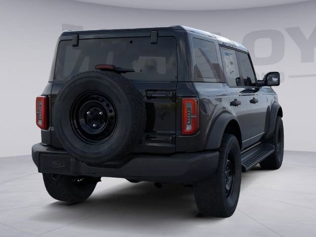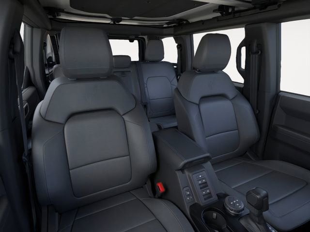 Black Appearance Package (Black Molded-in-Color Door Handles, Black Molded-in-Color Fender Flares, Black Molded-in-Color Sideview Mirror Caps, and Black-Painted Molded-in-Color Grille), Equipment Group 314A Lux Package (18" Bright Machined Aluminum Wheels, 3.73 Axle Ratio, 360-Degree Camera, Adaptive Cruise Control, Evasive Steering Assist, Front Parking Sensors, Heated Leather-Trimmed/Vinyl Bucket Seats, Information on Demand Panel, and Sideview Mirrors), Ford Connectivity Package (1-Year Included), 4-Wheel Disc Brakes, 7 Speakers, ABS brakes, Air Conditioning, Alloy wheels, AM/FM radio: SiriusXM with 360L, AM/FM Stereo, Auto High-beam Headlights, Auto-dimming Rear-View mirror, Automatic temperature control, Brake assist, Compass, Connected Navigation, Delay-off headlights, Driver door bin, Driver vanity mirror, Dual front impact airbags, Dual front side impact airbags, Electronic Stability Control, Emergency communication system: 911 Assist, Exterior Parking Camera Rear, Front anti-roll bar, Front Bucket Seats, Front Center Armrest, Front dual zone A/C, Front fog lights, Front License Plate Bracket, Front reading lights, Front wheel independent suspension, Fully automatic headlights, Hard Top Sound Deadening Headliner, Heated door mirrors, Heated front seats, Heated steering wheel, Illuminated entry, Integrated roll-over protection, Leather Shift Knob, Low tire pressure warning, Navigation system: Connected Navigation, Occupant sensing airbag, Outside temperature display, Overhead airbag, Overhead console, Panic alarm, Passenger door bin, Passenger vanity mirror, Power door mirrors, Power driver seat, Power passenger seat, Power steering, Power windows, Radio data system, Rear seat center armrest, Rear-Window Defroster and Washer, Remote keyless entry, Security system, Shadow Black-Painted Hard Top, SiriusXM with 360L, Speed control, Split folding rear seat, Steering wheel mounted audio controls, SYNC 4, Tachometer, Telescoping steering wheel, Tilt steering wheel, Traction control, Trip computer, Variably intermittent wipers, and Voltmeter. Recent Arrival! 2026 Ford Bronco 2.7L EcoBoost V6 Shadow Black