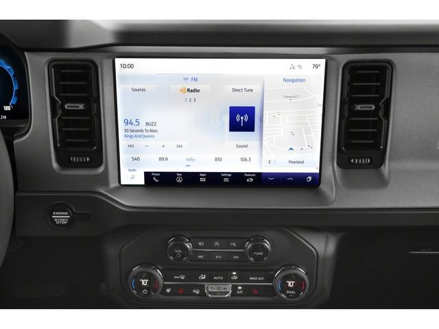 Equipment Group 314A Lux Package (18" Bright Machined Aluminum Wheels, 3.73 Axle Ratio, 360-Degree Camera, Adaptive Cruise Control, Evasive Steering Assist, Front Parking Sensors, Heated Leather-Trimmed/Vinyl Bucket Seats, Information on Demand Panel, and Sideview Mirrors), Ford Connectivity Package (1-Year Included), 4-Wheel Disc Brakes, 7 Speakers, ABS brakes, Air Conditioning, Alloy wheels, AM/FM radio: SiriusXM with 360L, AM/FM Stereo, Auto High-beam Headlights, Auto-dimming Rear-View mirror, Automatic temperature control, Brake assist, Carbonized Gray Molded-in-Color Hard Top, Compass, Connected Navigation, Delay-off headlights, Driver door bin, Driver vanity mirror, Dual front impact airbags, Dual front side impact airbags, Electronic Stability Control, Emergency communication system: 911 Assist, Exterior Parking Camera Rear, Front anti-roll bar, Front Bucket Seats, Front Center Armrest, Front dual zone A/C, Front fog lights, Front License Plate Bracket, Front reading lights, Front wheel independent suspension, Fully automatic headlights, Hard Top Sound Deadening Headliner, Heated door mirrors, Heated front seats, Heated steering wheel, Illuminated entry, Integrated roll-over protection, Leather Shift Knob, Low tire pressure warning, Navigation system: Connected Navigation, Occupant sensing airbag, Outside temperature display, Overhead airbag, Overhead console, Panic alarm, Passenger door bin, Passenger vanity mirror, Power door mirrors, Power driver seat, Power passenger seat, Power steering, Power windows, Radio data system, Rear seat center armrest, Rear-Window Defroster and Washer, Remote keyless entry, Security system, SiriusXM with 360L, Speed control, Split folding rear seat, Steering wheel mounted audio controls, SYNC 4, Tachometer, Telescoping steering wheel, Tilt steering wheel, Traction control, Trip computer, Variably intermittent wipers, and Voltmeter. Recent Arrival! 2026 Ford Bronco 2.7L EcoBoost V6 Shadow Black