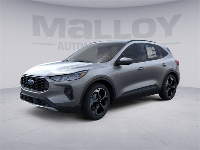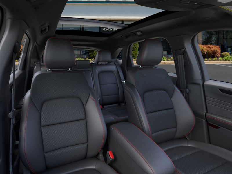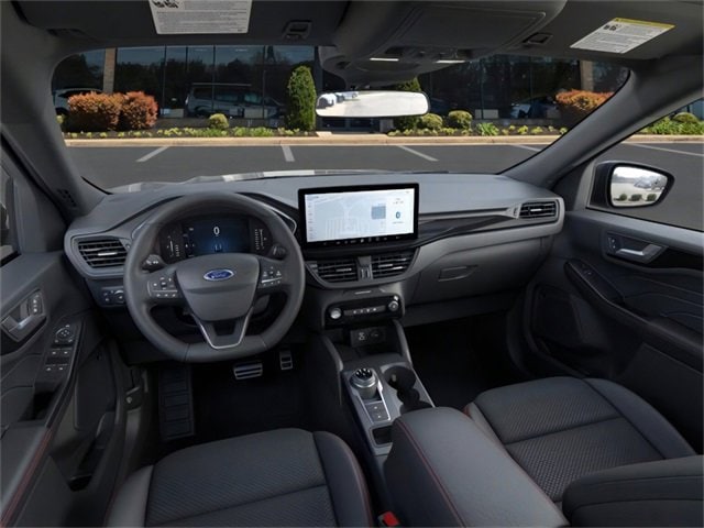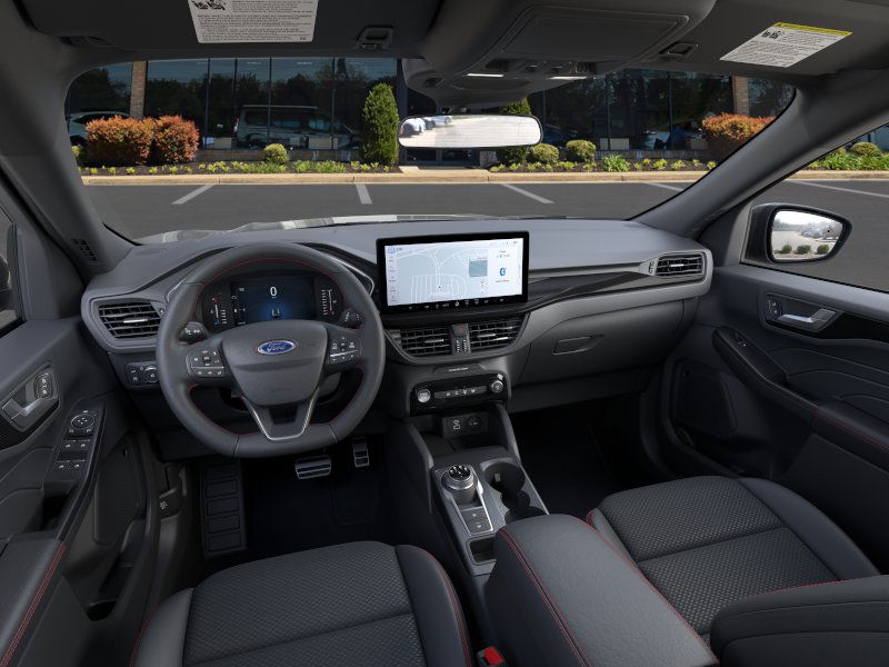 Equipment Group 400A (2.91 Axle Ratio, 4-Way Manual Front Passenger Seat, 8-Way Power Driver Seat, Electronic Fuel Door Release, Ford App, Neutral Towing Capability, Partial Vinyl/Cloth Heated Front Sport Contour Bucket Seats with Red Stitching, Pedestrian Alert Sounder, Radio: AM/FM Stereo with SiriusXM 360L, SYNC 4, and Wheels: 18" Rock Metallic Painted Aluminum), Tech Pack #1 (Adaptive Cruise Control with Stop-and-Go, Connected Navigation (1-Year Included), Digital Rear View Camera, Evasive Steering Assist, Ford Co-Pilot360 Assist+, Intersection Assist, Predictive Speed Assist, Rear Parking Sensor, and SYNC 4 with Enhanced Voice Recognition), 10-Way Power Driver's Seat w/Memory, 4-Wheel Disc Brakes, 6 Speakers, ABS brakes, Air Conditioning, Alloy wheels, AM/FM radio: SiriusXM 360L, Auto High-beam Headlights, Automatic temperature control, Black Roof-Rack Side Rails, Brake assist, Bumpers: body-color, Compass, Delay-off headlights, Driver door bin, Driver vanity mirror, Dual front impact airbags, Dual front side impact airbags, Electronic Stability Control, Emergency communication system: SYNC 4 911 Assist, Four wheel independent suspension, Front anti-roll bar, Front Bucket Seats, Front Center Armrest, Front dual zone A/C, Front fog lights, Front License Plate Bracket, Front reading lights, Fully automatic headlights, Heated door mirrors, Heated front seats, Heated steering wheel, Illuminated entry, Knee airbag, Low tire pressure warning, Memory seat, Occupant sensing airbag, Outside temperature display, Overhead airbag, Overhead console, Panic alarm, Panoramic Vista Roof, Passenger door bin, Passenger vanity mirror, Power door mirrors, Power driver seat, Power Liftgate, Power steering, Power windows, Radio data system, Rear anti-roll bar, Rear reading lights, Rear seat center armrest, Rear window defroster, Rear window wiper, Remote keyless entry, Speed control, Speed-sensing steering, Speed-Sensitive Wipers, Split folding rear seat, Spoiler, Sport steering wheel, Steering wheel mounted audio controls, Tachometer, Telescoping steering wheel, Tilt steering wheel, Traction control, Trip computer, Variably intermittent wipers, and Wheels: 19" Machined-Face Ebony-Painted Aluminum. 2026 Ford Escape Hybrid 2.5L iVCT Carbonized Gray Metallic