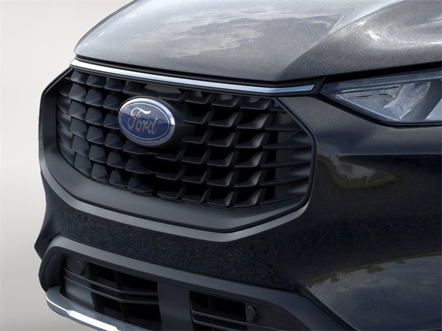 Cold Weather Package (Heated Front Row Seats, Heated Sideview Mirrors, Heated Steering Wheel, and Remote Starter System), Equipment Group 200A (3.81 Axle Ratio, 4-Way Manual Front Passenger Seat, 6-Way Manual Driver Seat, Ford App, Radio: AM/FM Stereo with SiriusXM 360L, SYNC 4, Unique Cloth Front Bucket Seats, and Wheels: 17" Shadow Silver-Painted Aluminum), 4-Wheel Disc Brakes, 6 Speakers, ABS brakes, Air Conditioning, Alloy wheels, AM/FM radio: SiriusXM 360L, Auto High-beam Headlights, Automatic temperature control, Brake assist, Bumpers: body-color, Compass, Delay-off headlights, Driver door bin, Driver vanity mirror, Dual front impact airbags, Dual front side impact airbags, Electronic Stability Control, Emergency communication system: SYNC 4 911 Assist, Four wheel independent suspension, Front anti-roll bar, Front Bucket Seats, Front Center Armrest, Front dual zone A/C, Front License Plate Bracket, Front reading lights, Fully automatic headlights, Illuminated entry, Knee airbag, Low tire pressure warning, Occupant sensing airbag, Outside temperature display, Overhead airbag, Overhead console, Panic alarm, Passenger door bin, Passenger vanity mirror, Power door mirrors, Power Liftgate, Power steering, Power windows, Radio data system, Rear anti-roll bar, Rear reading lights, Rear seat center armrest, Rear window defroster, Rear window wiper, Remote keyless entry, Speed control, Speed-sensing steering, Speed-Sensitive Wipers, Split folding rear seat, Spoiler, Steering wheel mounted audio controls, Tachometer, Telescoping steering wheel, Tilt steering wheel, Traction control, Trip computer, and Variably intermittent wipers. 2026 Ford Escape 1.5L EcoBoost Agate Black Metallic