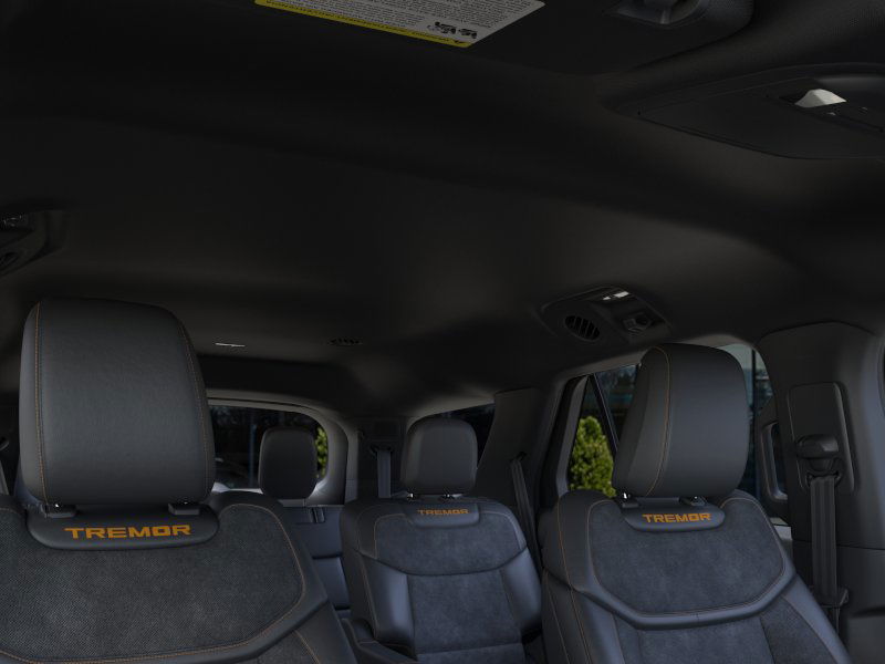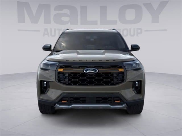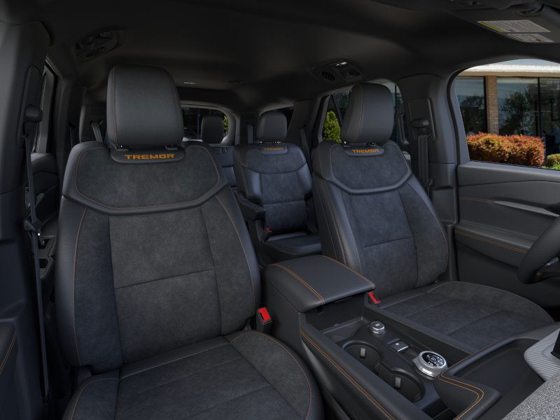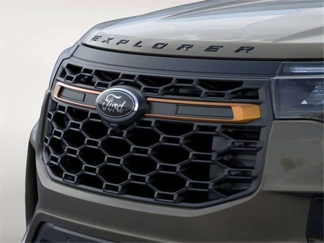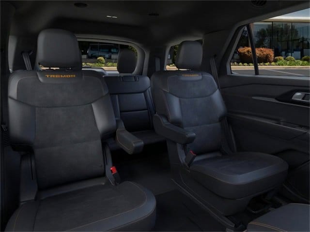 Equipment Group 800A Standard Package (Radio: B&O Sound System by Bang and Olufsen and Wheels: 18" High Gloss Black-Painted Aluminum), Ford Connectivity Package (one-Time Purchase - 7 Years), Tremor Convenience Package (3rd Row PowerFold Seats, Ambient Lighting, Auto-Dimming Interior Rear-View Mirror, Manual-Folding Sideview Mirrors, Memory Driver's Seat, and Rain-Sensing Wipers (front Only)), 10 Speakers, 3rd row seats: bench, 4-Wheel Disc Brakes, ABS brakes, Air Conditioning, Alloy wheels, AM/FM radio: SiriusXM with 360L, Apple CarPlay/Android Auto, Auto High-beam Headlights, Automatic temperature control, Brake assist, Bumpers: body-color, Compass, Delay-off headlights, Driver door bin, Driver vanity mirror, Dual front impact airbags, Dual front side impact airbags, Electronic Stability Control, Emergency communication system: 911 Assist, Exterior Parking Camera Rear, Four wheel independent suspension, Front anti-roll bar, Front Bucket Seats, Front Center Armrest, Front dual zone A/C, Front fog lights, Front License Plate Bracket, Front reading lights, Fully automatic headlights, Heated door mirrors, Heated front seats, Heated rear seats, Heated steering wheel, Illuminated entry, Knee airbag, Leather steering wheel, Low tire pressure warning, Navigation System, Occupant sensing airbag, Outside temperature display, Overhead airbag, Overhead console, Panic alarm, Passenger door bin, Passenger vanity mirror, Power door mirrors, Power driver seat, Power Liftgate, Power passenger seat, Power steering, Power windows, Rear air conditioning, Rear anti-roll bar, Rear reading lights, Rear window defroster, Rear window wiper, Remote keyless entry, Security system, Speed control, Speed-sensing steering, Speed-Sensitive Wipers, Split folding rear seat, Spoiler, Sport steering wheel, Steering wheel mounted audio controls, Tachometer, Telescoping steering wheel, Tilt steering wheel, Traction control, Trip computer, Variably intermittent wipers, and Ventilated front seats. 2026 Ford Explorer 2.3L EcoBoost I-4 Marsh Gray