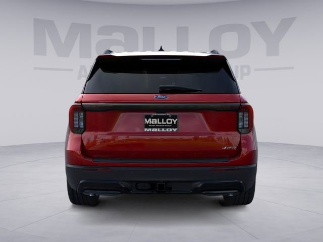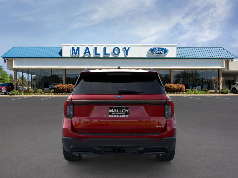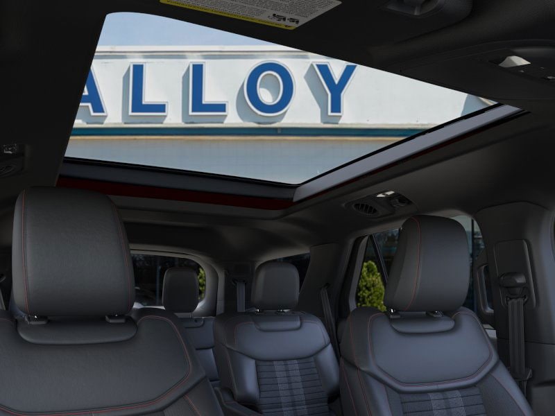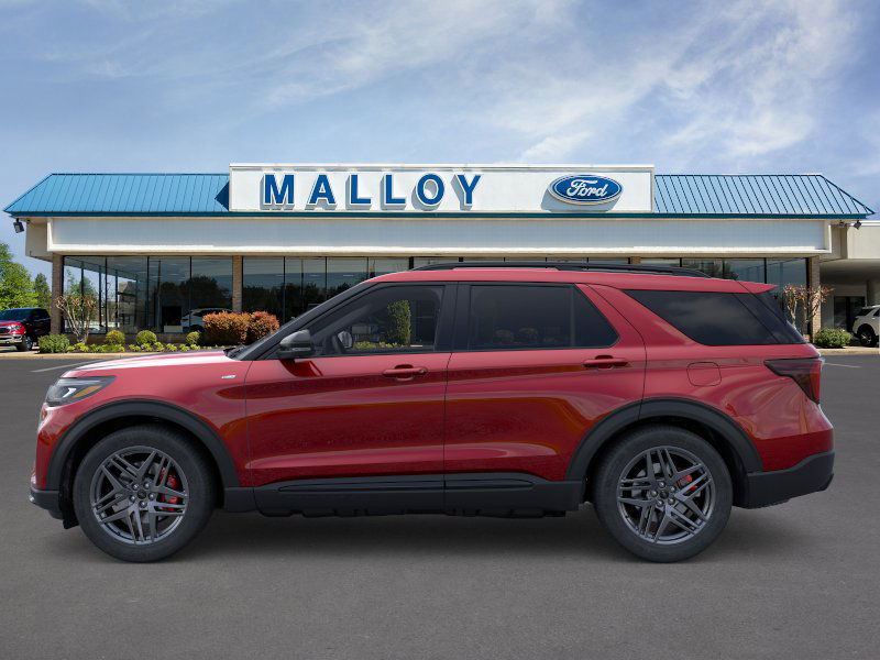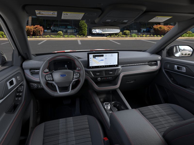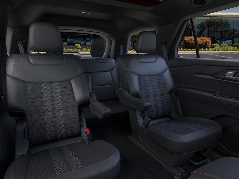 Equipment Group 300A Standard Package (Heated Unique Cloth Captain's Chairs, Radio: B&O Sound System by Bang and Olufsen, and Wheels: 20" Ebony-Painted Machined Aluminum), Ford Connectivity Package (one-Time Purchase - 7 Years), Premium Package (110V/150W AC Power Outlet, 2nd Row Heated Seats, Ambient Lighting, Auto-Dimming Interior Rear-View Mirror, Manual-Folding Sideview Mirrors, Memory Driver's Seat, and Rain-Sensing Wipers (front Only)), ST-Line Street Pack (Performance Brakes, Red Painted Performance Front and Rear Brake Calipers, and Wheels: 21" Magnetite-Painted Aluminum), 10 Speakers, 2nd Row Captain's Chairs w/E-Z Entry and Armrest, 3rd row seats: bench, 4-Wheel Disc Brakes, ABS brakes, Air Conditioning, Alloy wheels, AM/FM radio: SiriusXM with 360L, Apple CarPlay/Android Auto, Auto High-beam Headlights, Automatic temperature control, Brake assist, Bumpers: body-color, Compass, Delay-off headlights, Driver door bin, Driver vanity mirror, Dual front impact airbags, Dual front side impact airbags, Electronic Stability Control, Emergency communication system: 911 Assist, Exterior Parking Camera Rear, Four wheel independent suspension, Front anti-roll bar, Front Bucket Seats, Front Center Armrest, Front dual zone A/C, Front fog lights, Front License Plate Bracket, Front reading lights, Fully automatic headlights, Garage door transmitter, Heated door mirrors, Heated front seats, Heated steering wheel, Illuminated entry, Knee airbag, Leather steering wheel, Low tire pressure warning, Navigation System, Occupant sensing airbag, Outside temperature display, Overhead airbag, Overhead console, Panic alarm, Panoramic Fixed Glass Roof with Power Shade, Passenger door bin, Passenger vanity mirror, Power door mirrors, Power driver seat, Power Liftgate, Power passenger seat, Power steering, Power windows, Rear air conditioning, Rear anti-roll bar, Rear reading lights, Rear window defroster, Rear window wiper, Remote keyless entry, Security system, Speed control, Speed-sensing steering, Speed-Sensitive Wipers, Split folding rear seat, Spoiler, Steering wheel mounted audio controls, Tachometer, Telescoping steering wheel, Tilt steering wheel, Traction control, Trip computer, and Variably intermittent wipers. 2026 Ford Explorer 2.3L EcoBoost I-4 Rapid Red Metallic Tinted Clearcoat