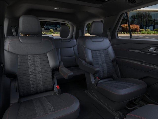 Equipment Group 300A Standard Package (Heated Unique Cloth Captain's Chairs, Radio: B&O Sound System by Bang and Olufsen, and Wheels: 20" Ebony-Painted Machined Aluminum), Ford Connectivity Package (one-Time Purchase - 7 Years), 10 Speakers, 2nd Row Captain's Chairs w/E-Z Entry and Armrest, 3rd row seats: bench, 4-Wheel Disc Brakes, ABS brakes, Air Conditioning, Alloy wheels, AM/FM radio: SiriusXM with 360L, Apple CarPlay/Android Auto, Auto High-beam Headlights, Automatic temperature control, Brake assist, Bumpers: body-color, Compass, Delay-off headlights, Driver door bin, Driver vanity mirror, Dual front impact airbags, Dual front side impact airbags, Electronic Stability Control, Emergency communication system: 911 Assist, Exterior Parking Camera Rear, Four wheel independent suspension, Front anti-roll bar, Front Bucket Seats, Front Center Armrest, Front dual zone A/C, Front fog lights, Front License Plate Bracket, Front reading lights, Fully automatic headlights, Garage door transmitter, Heated door mirrors, Heated front seats, Heated steering wheel, Illuminated entry, Internet access capable: FordPass Connect 5G, Knee airbag, Leather steering wheel, Low tire pressure warning, Navigation System, Occupant sensing airbag, Outside temperature display, Overhead airbag, Overhead console, Panic alarm, Panoramic Fixed Glass Roof with Power Shade, Passenger door bin, Passenger vanity mirror, Power door mirrors, Power driver seat, Power Liftgate, Power passenger seat, Power steering, Power windows, Rear air conditioning, Rear anti-roll bar, Rear reading lights, Rear window defroster, Rear window wiper, Remote keyless entry, SecuriCode Keyless Entry Keypad, Security system, Speed control, Speed-sensing steering, Speed-Sensitive Wipers, Split folding rear seat, Spoiler, Steering wheel mounted audio controls, Tachometer, Telescoping steering wheel, Tilt steering wheel, Traction control, Trip computer, and Variably intermittent wipers. Recent Arrival! 2026 Ford Explorer 2.3L EcoBoost I-4 Carbonized Gray Metallic