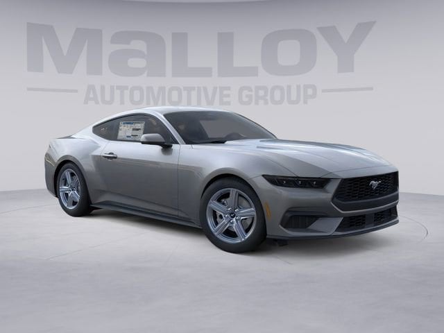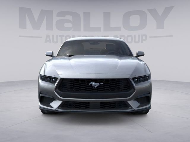 1st Row Carpeted Black Floor Mats, 4-Wheel Disc Brakes, ABS brakes, Air Conditioning, Alloy wheels, AM/FM Stereo, Auto High-beam Headlights, Automatic temperature control, Brake assist, Bumpers: body-color, Compass, Delay-off headlights, Driver door bin, Driver vanity mirror, Dual front impact airbags, Dual front side impact airbags, Electronic Stability Control, Emergency communication system: 911 Assist, Exterior Parking Camera Rear, Four wheel independent suspension, Front anti-roll bar, Front Bucket Seats, Front Center Armrest, Front dual zone A/C, Front reading lights, Fully automatic headlights, Illuminated entry, Knee airbag, Leather Shift Knob, Low tire pressure warning, Occupant sensing airbag, Outside temperature display, Overhead airbag, Overhead console, Panic alarm, Passenger door bin, Passenger vanity mirror, Power door mirrors, Power steering, Power windows, Radio data system, Rain sensing wipers, Rear anti-roll bar, Rear Parking Sensors, Rear window defroster, Remote keyless entry, Speed control, Speed-sensing steering, Speed-Sensitive Wipers, Split folding rear seat, Sport steering wheel, Steering wheel mounted audio controls, SYNC 4, Tachometer, Telescoping steering wheel, Tilt steering wheel, Traction control, Trip computer, Variably intermittent wipers, and Voltmeter. 2026 Ford Mustang EcoBoost 2.3L I4 GTDi DOHC Turbocharged VCT Carbonized Gray Metallic