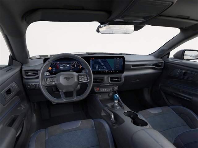 Anti-Theft Package (Active Anti-Theft System, Locking Center Console, and Wheel Locking Kit), Dark Horse Appearance Package (Notorious Blue Painted Unique Brake Calipers, Painted Black Roof, and Unique Hood Graphic), Equipment Group 700A Deluxe Package (Aluminum Foot Pedals, AM/FM Stereo, Approach Detection, B&O Sound System by Bang & Olufsen, Cloth/Vinyl Climate-Controlled Bucket Seats, HD Radio, and SYNC 4), RECARO Sport Seats (RECARO Micro-Suede/Vinyl Bucket Seats), 12 Speakers, 4-Wheel Disc Brakes, ABS brakes, Adaptive suspension, Air Conditioning, Alloy wheels, AM/FM radio: SiriusXM with 360L, Auto High-beam Headlights, Auto-dimming Rear-View mirror, Automatic temperature control, Brake assist, Bumpers: body-color, Cloth/Vinyl Heated Bucket Seats, Compass, Delay-off headlights, Driver door bin, Driver vanity mirror, Dual front impact airbags, Dual front side impact airbags, Electronic Stability Control, Emergency communication system: 911 Assist, Exterior Parking Camera Rear, Four wheel independent suspension, Front anti-roll bar, Front Bucket Seats, Front Center Armrest, Front dual zone A/C, Front reading lights, Fully automatic headlights, Heated front seats, Heated steering wheel, Illuminated entry, Knee airbag, Low tire pressure warning, Navigation system: Connected Navigation, Occupant sensing airbag, Outside temperature display, Overhead airbag, Overhead console, Panic alarm, Passenger door bin, Passenger vanity mirror, Power door mirrors, Power driver seat, Power passenger seat, Power steering, Power windows, Radio data system, Rain sensing wipers, Rear anti-roll bar, Rear Parking Sensors, Rear window defroster, Remote keyless entry, Speed control, Speed-sensing steering, Speed-Sensitive Wipers, Split folding rear seat, Spoiler, Sport steering wheel, Steering wheel mounted audio controls, Tachometer, Telescoping steering wheel, Tilt steering wheel, Traction control, Trip computer, Variably intermittent wipers, and Voltmeter. 2026 Ford Mustang 5.0L V8 DOHC 32V Shadow Black