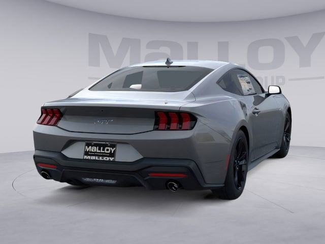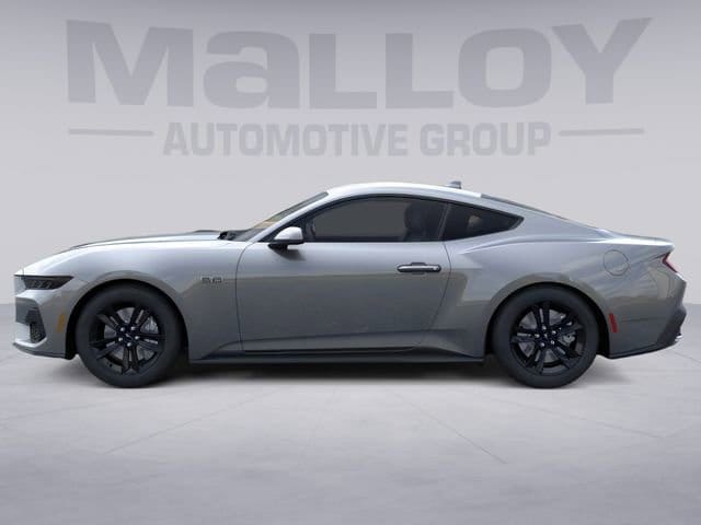 Equipment Group 300A Standard Package (AM/FM Stereo, Cloth Bucket Seats, and SYNC 4), 1st Row Carpeted Black Floor Mats, 4-Wheel Disc Brakes, ABS brakes, Air Conditioning, Alloy wheels, Auto High-beam Headlights, Automatic temperature control, Brake assist, Bumpers: body-color, Compass, Delay-off headlights, Driver door bin, Driver vanity mirror, Dual front impact airbags, Dual front side impact airbags, Electronic Stability Control, Emergency communication system: 911 Assist, Exterior Parking Camera Rear, Four wheel independent suspension, Front anti-roll bar, Front Bucket Seats, Front Center Armrest, Front dual zone A/C, Front reading lights, Fully automatic headlights, Illuminated entry, Knee airbag, Leather Shift Knob, Leather steering wheel, Low tire pressure warning, Occupant sensing airbag, Outside temperature display, Overhead airbag, Overhead console, Panic alarm, Passenger door bin, Passenger vanity mirror, Power door mirrors, Power steering, Power windows, Radio data system, Rain sensing wipers, Rear anti-roll bar, Rear Parking Sensors, Rear window defroster, Remote keyless entry, Speed control, Speed-sensing steering, Speed-Sensitive Wipers, Split folding rear seat, Sport steering wheel, Steering wheel mounted audio controls, Tachometer, Telescoping steering wheel, Tilt steering wheel, Traction control, Trip computer, Variably intermittent wipers, and Voltmeter. 2026 Ford Mustang 5.0L V8 Ti-VCT Carbonized Gray Metallic
