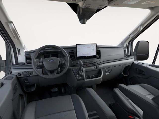 Ford Connectivity Package (1-Year Included), 4 Speakers, 4-Wheel Disc Brakes, 4.10 Limited-Slip Axle Ratio, ABS brakes, Air Conditioning, AM/FM radio, AM/FM Stereo, Apple CarPlay/Android Auto, Auto High-beam Headlights, Brake assist, Dark Palazzo Gray Vinyl Bucket Seats, Delay-off headlights, Driver door bin, Driver's Seat Mounted Armrest, Dual front impact airbags, Dual front side impact airbags, Electronic Stability Control, Emergency communication system: 911 Assist, Exterior Parking Camera Rear, Front anti-roll bar, Front Bucket Seats, Front reading lights, Front wheel independent suspension, Fully automatic headlights, Illuminated entry, Low tire pressure warning, Navigation system: Connected Navigation, Occupant sensing airbag, Overhead airbag, Panic alarm, Passenger cancellable airbag, Passenger door bin, Power door mirrors, Power steering, Power windows, Rain sensing wipers, Remote keyless entry, Speed control, Steering wheel mounted audio controls, SYNC 4, Tachometer, Telescoping steering wheel, Tilt steering wheel, Traction control, Variably intermittent wipers, Vinyl Front Bucket Seats, and Wheels: 16" Silver Steel with Black Hubcap. 2026 Ford Transit-350 3.5L V6 Flex Fuel Oxford White