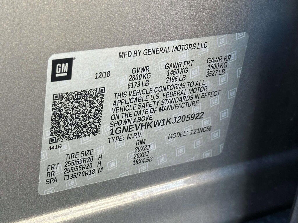 Front License Plate Bracket Mounting Package, LT Premium Package (120-Volt Power Outlet, Bose Premium 10-Speaker Audio System Feature, Radio: Chevrolet Infotainment AM/FM Stereo w/Navigation, Rear Camera Mirror, Surround Vision, and Wheels: 20 Machined Face Aluminum), Preferred Equipment Group 3LT, Trailering Equipment (Heavy-Duty Cooling System), AWD, 3.49 Axle Ratio, 3rd row seats: split-bench, 4-Wheel Disc Brakes, 6 Speakers, 7-Passenger Seating (2-2-3 Seating Configuration), ABS brakes, Air Conditioning, Alloy wheels, AM/FM radio: SiriusXM, Apple CarPlay/Android Auto, Automatic temperature control, Brake assist, Bumpers: body-color, Compass, Delay-off headlights, Driver door bin, Driver vanity mirror, Dual front impact airbags, Dual front side impact airbags, Dual SkyScape 2-Panel Power Sunroof, Electronic Stability Control, Emergency communication system, Four wheel independent suspension, Front anti-roll bar, Front Bucket Seats, Front Center Armrest, Front dual zone A/C, Front fog lights, Front reading lights, Fully automatic headlights, Garage door transmitter, Heated door mirrors, Heated front seats, High-Intensity Discharge Headlights, Illuminated entry, Leather-Appointed Seat Trim, Low tire pressure warning, Occupant sensing airbag, Outside temperature display, Overhead airbag, Overhead console, Panic alarm, Passenger door bin, Passenger vanity mirror, Power door mirrors, Power driver seat, Power Liftgate, Power passenger seat, Power steering, Power windows, Premium audio system: Chevrolet MyLink, Radio data system, Radio: Chevrolet Infotainment AM/FM w/8 Screen, Rear air conditioning, Rear anti-roll bar, Rear reading lights, Rear window defroster, Rear window wiper, Remote keyless entry, Roof rack: rails only, Security system, SiriusXM Radio, Speed control, Speed-sensing steering, Spoiler, Steering wheel mounted audio controls, Tachometer, Telescoping steering wheel, Tilt steering wheel, Traction control, Trip computer, Turn signal indicator mirrors, Variably intermittent wipers, Voltmeter, and Wheels: 18 Bright Silver Painted Aluminum. Recent Arrival! Odometer is 12008 miles below market average!