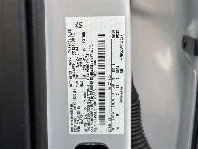 Bed Utility Package (BoxLink, LED Box Lighting, Tailgate Step w/Tailgate Work Surface, and Zone Lighting), Equipment Group 302A High (10-Way Power Driver & Passenger Seats, 8" Productivity Screen in Instrument Cluster, Auto-Dimming Rear-View Mirror, Class IV Trailer Hitch Receiver, Dual Zone Electronic Automatic Temperature Control, Heated Front Seats, Intelligent Access w/Push Button Start, Leather-Wrapped Steering Wheel, LED Reflector Headlamps, LED Sideview Mirror Spotlights, Onboard 400W Outlet, Power Glass Heated Sideview Mirrors, Radio: AM/FM SiriusXM w/360L, Rear Under-Seat Storage, SecuriCode Drivers Side Keyless-Entry Keypad, and SYNC 4 w/Enhanced Voice Recognition), FX4 Off-Road Package (Tray Style Floor Liner (47W)), Trailer Tow Package (Integrated Trailer Brake Controller and Pro Trailer Backup Assist), XLT Chrome Appearance Package (2-Bar Style Grille w/Chrome 2 Minor Bars, Bright Polished Step Bars, Chrome Door & Tailgate Handles w/Body-Color Bezel, Chrome Single-Tip Exhaust, and Wheels: 18" Chrome-Like PVD), XLT Sport Appearance Package (Accent-Color Step Bars, Black 2-Bar Style Grille w/Black Surround/Accents, Body-Color Door & Tailgate Handles, Body-Color Front & Rear Bumpers, Box Side Decals, Unique Sport Cloth 40/Console/40 Front-Seats, and Wheels: 18" 6-Spoke Machined Aluminum), 3.31 Axle Ratio, 360 Degree Camera, 4-Wheel Disc Brakes, 6 Speakers, ABS brakes, Air Conditioning, Alloy wheels, AM/FM radio, Auto High-beam Headlights, Auto Start-Stop Removal, Brake assist, Bumpers: chrome, Cloth 40/20/40 Front Seat, Compass, Connected Navigation & SiriusXM w/360L Removal, Delay-off headlights, Driver door bin, Driver vanity mirror, Dual front impact airbags, Dual front side impact airbags, Electronic Locking w/3.31 Axle Ratio, Electronic Stability Control, Emergency communication system: SYNC 4 911 Assist, Extended Range 36 Gallon Fuel Tank, Exterior Parking Camera Rear, Front anti-roll bar, Front Center Armrest w/Storage, Front fog lights, Front reading lights, Front wheel independent suspension, Fully automatic headlights, Heated door mirrors, Illuminated entry, Interior Work Surface, Low tire pressure warning, Occupant sensing airbag, Outside temperature display, Overhead airbag, Overhead console, Panic alarm, Partitioned Lockable Fold-Flat Storage, Passenger door bin, Passenger vanity mirror, Power door mirrors, Power steering, Power windows, Power-Adjustable Pedals, Pro Power Onboard - 2KW, Radio data system, Radio: AM/FM Stereo w/6 Speakers, Radio: B&O Sound System by Bang & Olufsen, Rear reading lights, Rear step bumper, Rear window defroster, Remote keyless entry, Remote Start System, Security system, Speed control, Speed-sensing steering, Split folding rear seat, Steering wheel mounted audio controls, SYNC 4, Tachometer, Telescoping steering wheel, Tilt steering wheel, Traction control, Trip computer, Variably intermittent wipers, Voltmeter, and Wheels: 17" Silver Painted Aluminum.