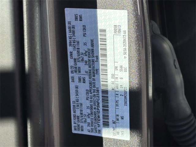 2022 FORD F-150 4X4 SUPERCREW, SYNC 4 W ENHANCED VOICE RECOGNITION, APPLE CAR PLAY AND ANDROID AUTO CAPABLE, POWER SLIDING REAR WINDOW, BED UTILITY PACKAGE,TAILGATE STEP, BEDLINER, REMOTE START SYSTEM, PLEASE CONTACT ONE OF OUR FORD CERTIFIED PRE WONED SALES ADVISORS FOR COMPLETE DETAILS