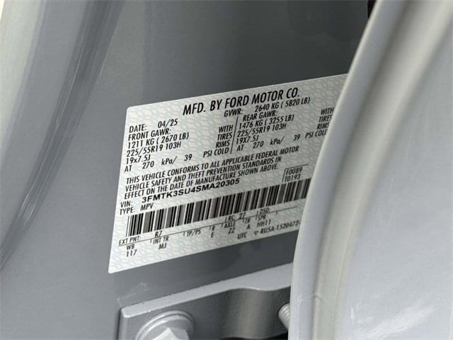 Recent Arrival! Equipment Group 300A Standard Package, Interior Protection Package (1st & 2nd Row Floor Liners w/o Carpet Mats, Cargo Area Cover, and Cargo Floor Liner), 10 Speakers, 4-Wheel Disc Brakes, ABS brakes, Air Conditioning, Alloy wheels, AM/FM radio: SiriusXM with 360L, Apple CarPlay/Android Auto, Auto High-beam Headlights, Auto-dimming Rear-View mirror, Automatic temperature control, Brake assist, Bumpers: body-color, Compass, Delay-off headlights, Driver door bin, Driver vanity mirror, Dual front impact airbags, Dual front side impact airbags, Electronic Stability Control, Emergency communication system: 911 Assist, Exterior Parking Camera Rear, Four wheel independent suspension, Front anti-roll bar, Front Bucket Seats, Front Center Armrest, Front dual zone A/C, Front License Plate Bracket, Front reading lights, Fully automatic headlights, Garage door transmitter, Heated door mirrors, Heated front seats, Heated steering wheel, Heated/Ventilated Perforated ActiveX Bucket Seats, Illuminated entry, Knee airbag, Low tire pressure warning, Memory seat, Mobile Power Cord (120V/240V), Navigation system: Connected Navigation, Occupant sensing airbag, Outside temperature display, Overhead airbag, Overhead console, Panic alarm, Panoramic Fixed-Glass Roof, Passenger door bin, Passenger vanity mirror, Power door mirrors, Power driver seat, Power Liftgate, Power passenger seat, Power steering, Power windows, Radio data system, Radio: B&O Sound System by Bang & Olufsen, Rain sensing wipers, Rear anti-roll bar, Rear seat center armrest, Rear side impact airbag, Rear window defroster, Rear window wiper, Remote keyless entry, Security system, SiriusXM w/360L, Speed control, Speed-sensing steering, Speed-Sensitive Wipers, Split folding rear seat, Spoiler, Steering wheel mounted audio controls, SYNC 4A w/Enhanced Voice Recognition, Telescoping steering wheel, Tilt steering wheel, Traction control, Trip computer, Turn signal indicator mirrors, Variably intermittent wipers, Ventilated front seats, Wheels: 19" Bright Machined Face Aluminum, and Wheels: 19" Bright Machined-Face Aluminum.