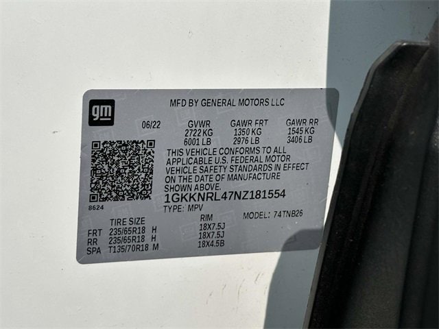 Driver Convenience Package (120-Volt Power Outlet, 8-Way Power Driver Seat Adjuster, Brushed Aluminum Roof Rails, Hands Free Power Programmable Liftgate, Heated Driver & Front Passenger Seats, Power Driver Lumbar Control Seat Adjuster, and Remote Start), Infotainment Package (Bose Premium 8-Speaker Audio System Feature, Radio: AM/FM 8 Diagonal Multi-Touch Navigation, and Wireless Apple CarPlay/Wireless Android Auto), Preferred Equipment Group 3SA, AWD, Jet Black Cloth, 3.47 Final Drive Axle Ratio, 3rd row seats: split-bench, 4-Way Manual Driver Seat Adjuster, 4-Way Manual Passenger Seat Adjuster, 4-Wheel Disc Brakes, 6 Speakers, 6-Passenger (2-2-2 Seating Configuration), 6-Speaker Audio System Feature, ABS brakes, Air Conditioning, Alloy wheels, AM/FM radio: SiriusXM, Apple CarPlay/Android Auto, Auto High-beam Headlights, Automatic temperature control, Brake assist, Bumpers: body-color, Compass, Delay-off headlights, Driver door bin, Driver vanity mirror, Dual front impact airbags, Dual front side impact airbags, Electronic Stability Control, Emergency communication system: OnStar and GMC Connected Services capable, Four wheel independent suspension, Front anti-roll bar, Front Bucket Seats, Front Center Armrest, Front dual zone A/C, Front License Plate Bracket, Front reading lights, Fully automatic headlights, Heated door mirrors, Illuminated entry, Knee airbag, Low tire pressure warning, Not Equipped w/Front & Rear Park Assist, Occupant sensing airbag, Outside temperature display, Overhead airbag, Overhead console, Panic alarm, Passenger door bin, Passenger vanity mirror, Power door mirrors, Power steering, Power windows, Premium audio system: GMC Infotainment System, Premium Cloth Seat Trim, Radio data system, Radio: AM/FM w/8 Diagonal Multi-Touch Display, Rear air conditioning, Rear anti-roll bar, Rear reading lights, Rear window defroster, Rear window wiper, Remote keyless entry, Security system, SiriusXM Radio, Speed control, Speed-sensing steering, Spoiler, Steering wheel mounted audio controls, Tachometer, Telescoping steering wheel, Tilt steering wheel, Traction control, Trip computer, Turn signal indicator mirrors, Variably intermittent wipers, Voltmeter, and Wheels: 18 Machined Aluminum w/Dark Accents.