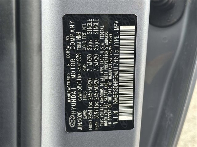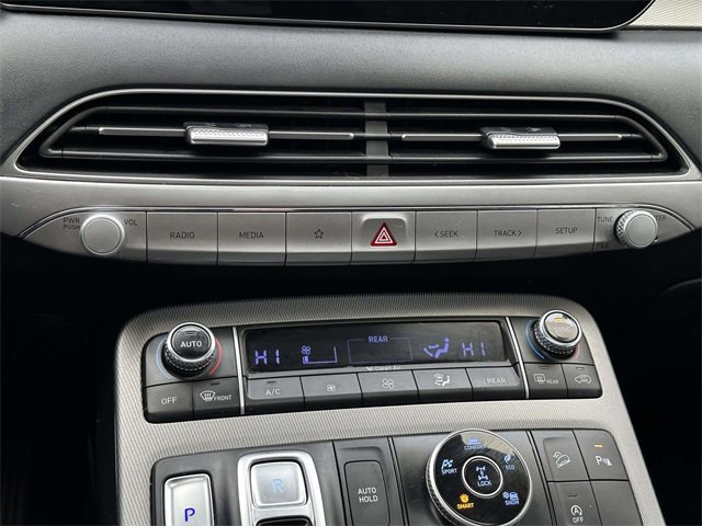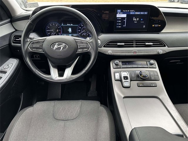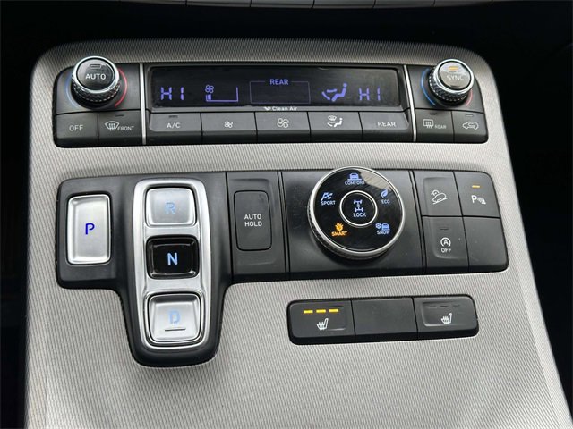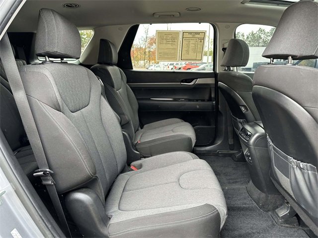 3rd Row USB Outlets, 4-Wheel Disc Brakes, 7 High-Resolution Cluster Display, ABS brakes, Air Conditioning, Apple CarPlay & Android Auto, Auto High-beam Headlights, Auto-dimming Rear-View mirror, Automatic temperature control, Brake assist, Cargo Tray, Carpeted Floor Mats, Cloth Seat Trim, Delay-off headlights, Driver door bin, Driver vanity mirror, Dual front impact airbags, Dual front side impact airbags, Electronic Stability Control, Front anti-roll bar, Front dual zone A/C, Front Parking Sensors, Fully automatic headlights, Hands-Free Smart Liftgate, Heated Front Bucket Seats, Heated front seats, Knee airbag, LED Taillights, Low tire pressure warning, Occupant sensing airbag, Overhead airbag, Overhead console, Power moonroof, Power steering, Power windows, Rear air conditioning, Rear anti-roll bar, Rear window defroster, Remote keyless entry, Speed-sensing steering, Steering wheel mounted audio controls, Traction control, Wheels: 20 x 7.5J Split 5-Spoke Machined Alloy. Hyundai Palisade SEL