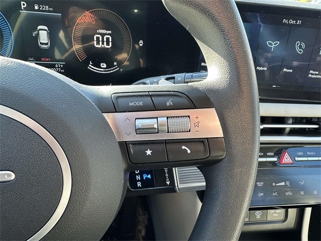 Option Group 01, 17" Alloy Wheels, 4-Wheel Disc Brakes, 6 Speakers, ABS brakes, Air Conditioning, Alloy wheels, AM/FM radio: SiriusXM, Apple CarPlay & Android Auto, Auto High-beam Headlights, Automatic temperature control, Brake assist, Bumpers: body-color, Cargo Cover, Cargo Net, Carpeted Floor Mats, Delay-off headlights, Driver door bin, Driver vanity mirror, Dual front impact airbags, Dual front side impact airbags, Electronic Stability Control, Emergency communication system: Bluelink+, First Aid Kit, Four wheel independent suspension, Front anti-roll bar, Front Bucket Seats, Front Center Armrest, Front dual zone A/C, Front reading lights, Fully automatic headlights, Heated door mirrors, Heated Front Bucket Seats, Heated front seats, Illuminated entry, Low tire pressure warning, Occupant sensing airbag, Outside temperature display, Overhead airbag, Overhead console, Panic alarm, Passenger door bin, Passenger vanity mirror, Power door mirrors, Power driver seat, Power Liftgate, Power steering, Power windows, Radio data system, Radio: AM/FM/HD Audio System, Rear anti-roll bar, Rear reading lights, Rear seat center armrest, Rear side impact airbag, Rear window defroster, Rear window wiper, Remote keyless entry, Security system, Speed control, Split folding rear seat, Spoiler, Stain & Odor Resistant Cloth Seat Trim, Steering wheel mounted audio controls, Tachometer, Telescoping steering wheel, Tilt steering wheel, Traction control, Trip computer, and Variably intermittent wipers.