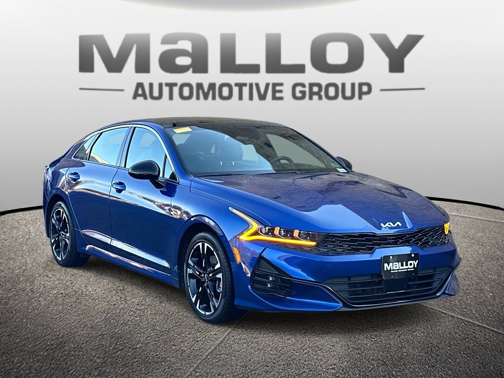 2023 KIA K5 GT-LINE, 18 GLOSS BLACK WHEELS, REAR SPOILER, PANORAMIC MOONROOF, APPLE CARPLAY AND ANDROID AUTO CAPABLE, SMART CRUISE CONTROL, HIGHWAY DRIVE ASSIST, REAR VIEW CAMERA WITH DYNAMIC GUIDELINES, REMOTE START, TILT AND TELESCOPIC STEERING COLUMN, REAR OCCUPANT ALERT AND SO MUCH MORE PLEASE CONTACT ONE OF OUR CERTIFIED PRE -OWNED SALES ADVISORS FOR COMPLETE DETAILSSapphire Blue 2023 Kia K5 GT-Line FWD 8-Speed Automatic 1.6L I4 DGI Turbocharged DOHC 16V LEV3-ULEV70 180hpGT-Line Panoramic Sunroof Package (LED Interior Lighting and Panoramic Sunroof), GT-Line Premium Package (Forward Collision Avoidance-Assist, Highway Driving Assist, LED Projection Headlamps, and Smart Cruise Control w/Stop & Go), 4-Wheel Disc Brakes, 6 Speakers, ABS brakes, Air Conditioning, Alloy wheels, AM/FM radio: SiriusXM, Apple CarPlay & Android Auto, Auto High-beam Headlights, Automatic temperature control, Brake assist, Bumpers: body-color, Cargo Net, Cargo Tray, Carpeted Floor Mats, Cloth/SynTex Seat Trim, Delay-off headlights, Driver door bin, Driver vanity mirror, Dual front impact airbags, Dual front side impact airbags, Electronic Stability Control, Four wheel independent suspension, Front anti-roll bar, Front Bucket Seats, Front Center Armrest, Front dual zone A/C, Front fog lights, Front reading lights, Fully automatic headlights, Heated door mirrors, Illuminated entry, Knee airbag, Low tire pressure warning, Navigation System, Occupant sensing airbag, Outside temperature display, Overhead airbag, Overhead console, Panic alarm, Passenger door bin, Passenger vanity mirror, Power door mirrors, Power driver seat, Power steering, Power windows, Radio data system, Radio: AM/FM/MP3 Audio System, Rear anti-roll bar, Rear seat center armrest, Rear side impact airbag, Rear window defroster, Remote keyless entry, Security system, Speed control, Speed-sensing steering, Split folding rear seat, Spoiler, Sport steering wheel, Steering wheel mounted audio controls, Tachometer, Telescoping steering wheel, Tilt steering wheel, Traction control, Trip computer, Trunk Cargo Management System, Turn signal indicator mirrors, Variably intermittent wipers, and Wheels: 18 Gloss Black Machined Finish Alloy. Recent Arrival!