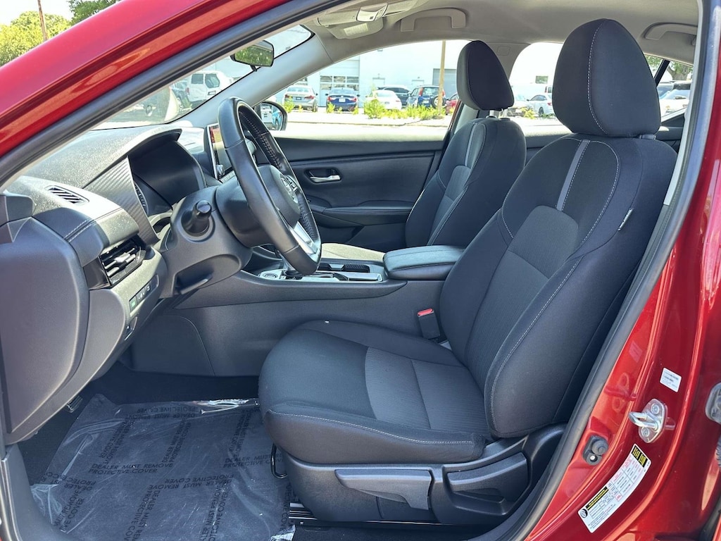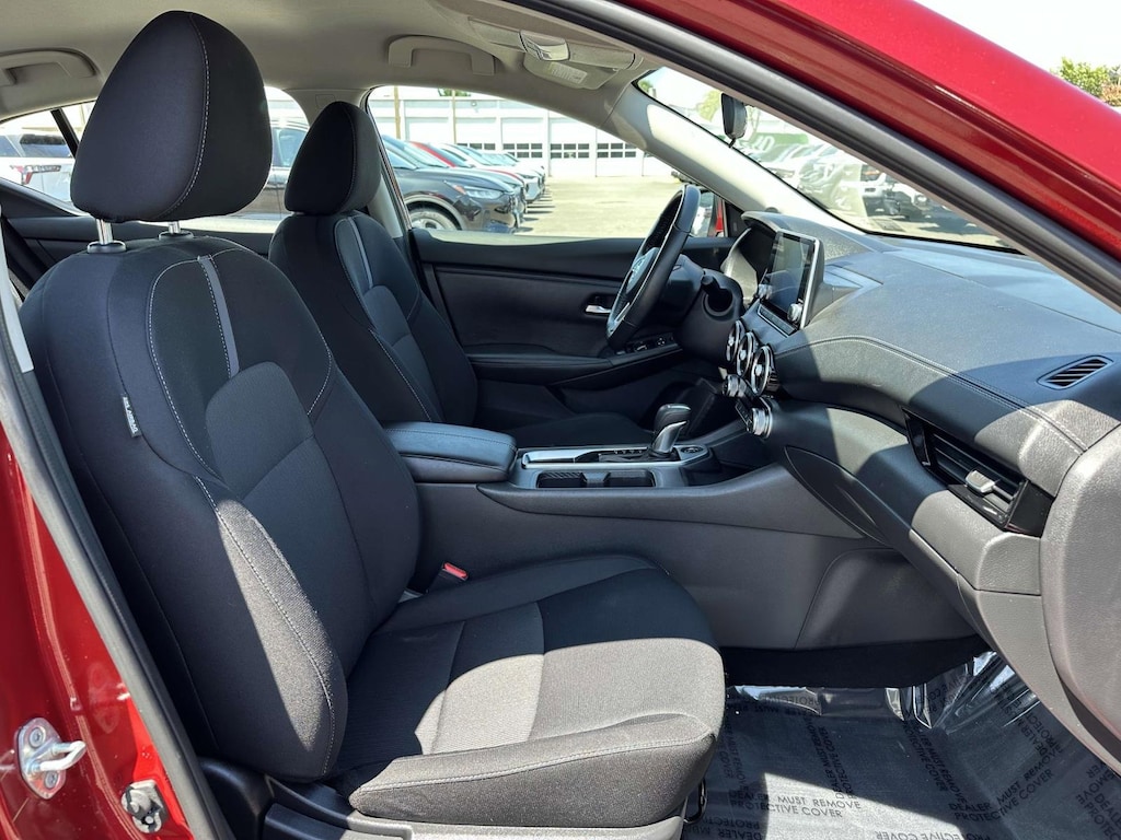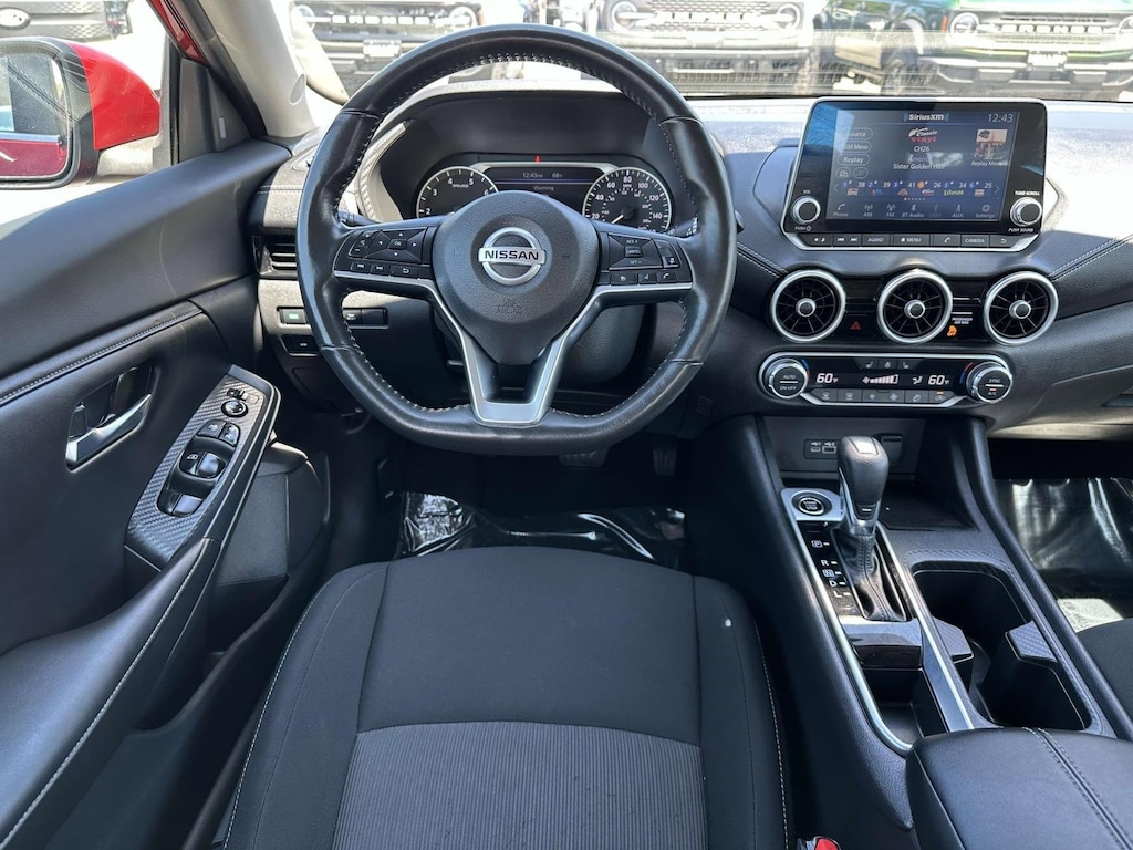 Scarlet Ember Tintcoat 2023 Nissan Sentra SV FWD CVT with Xtronic 2.0L DOHC CVT with Xtronic, Charcoal Cloth, 4-Wheel Disc Brakes, 6 Speakers, ABS brakes, All-Weather Package, AM/FM radio: SiriusXM, Blind Spot Warning, Body Colored Splash Guards (4-Piece), Brake assist, Bumpers: body-color, Carpeted Floor Mats w/Trunk Mat, Clear Rear Bumper Protector, Door Sill Plates, Driver door bin, Driver vanity mirror, Dual front impact airbags, Dual front side impact airbags, Dual Zone Auto Climate Control, Electronic Stability Control, Front anti-roll bar, Front Bucket Seats, Front Center Armrest, Front reading lights, Heated door mirrors, Heated Front Seats, Hide-A-Way Trunk Net, Illuminated entry, Knee airbag, Leather-Wrapped Heated Steering Wheel, Low tire pressure warning, NissanConnect featuring Apple CarPlay and Android Auto, Occupant sensing airbag, Outside temperature display, Overhead airbag, Overhead console, Passenger vanity mirror, Power door mirrors, Power steering, Power windows, Premium Cloth Seat Trim, Radio data system, Radio: AM/FM w/RDS/MP3/Aux-In, Rear anti-roll bar, Rear Parking Sensors, Rear side impact airbag, Remote Engine Start, Remote keyless entry, Steering wheel mounted audio controls, Tachometer, Telescoping steering wheel, Tilt steering wheel, Trip computer, Trunk Package.