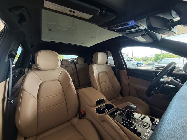 Recent Arrival! 10 Speakers, 4-Wheel Disc Brakes, 8-Way Power Sport Seats, ABS brakes, Adaptive suspension, Air Conditioning, Alloy wheels, AM/FM radio: SiriusXM, Apple CarPlay, Automatic temperature control, Axle Ratio: TBD, Brake assist, Bumpers: body-color, Delay-off headlights, Driver door bin, Driver vanity mirror, Dual front impact airbags, Dual front side impact airbags, Electronic Stability Control, Exterior Parking Camera Rear, Four wheel independent suspension, Front anti-roll bar, Front Bucket Seats, Front Center Armrest, Front dual zone A/C, Front reading lights, Fully automatic headlights, Garage door transmitter: HomeLink, Heated door mirrors, Illuminated entry, Knee airbag, Leather Seat Trim, Leather Shift Knob, Low tire pressure warning, Navigation System, Occupant sensing airbag, Outside temperature display, Overhead airbag, Overhead console, Panic alarm, Passenger door bin, Passenger vanity mirror, Porsche Communication Management, Power door mirrors, Power driver seat, Power Liftgate, Power passenger seat, Power steering, Power windows, Radio data system, Rain sensing wipers, Rear anti-roll bar, Rear fog lights, Rear reading lights, Rear seat center armrest, Rear side impact airbag, Rear window defroster, Remote keyless entry, Security system, Speed control, Split folding rear seat, Spoiler, Steering wheel mounted audio controls, Tachometer, Telescoping steering wheel, Tilt steering wheel, Traction control, Trip computer, Turn signal indicator mirrors, Variably intermittent wipers, Voltmeter, and Wheels: 20" Cayenne Design.